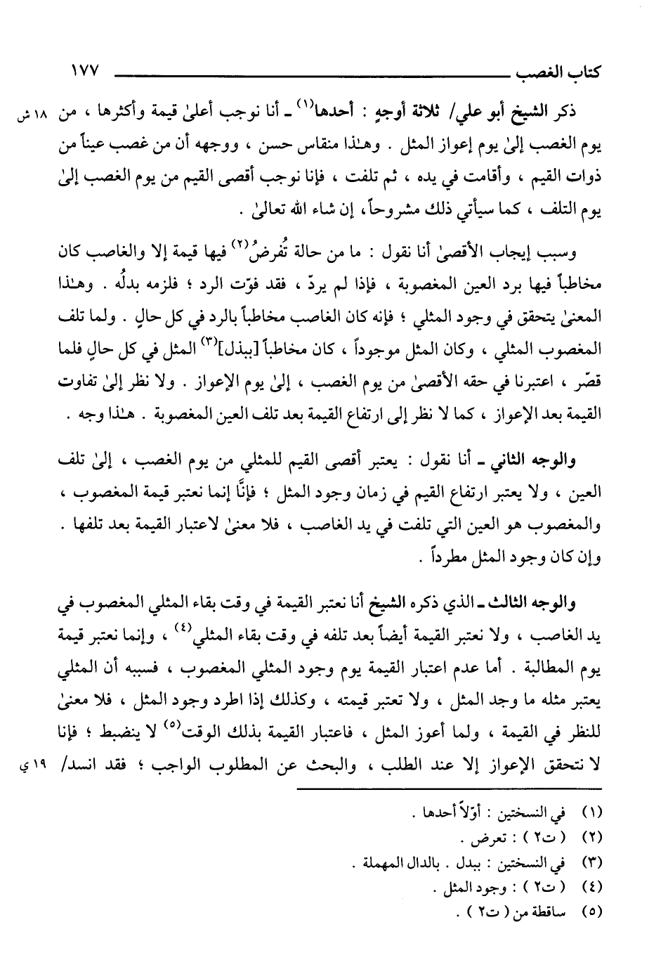 والوجه الثالث - الذي ذكره الشيخ أنا نعتبر القيمة في وقت بقاء المثلي المغصوب في يد الغاصب، ولا نعتبر القيمة أيضاً بعد تلفه في وقت بقاء المثلي (4)، وإنما نعتبر قيمة يوم المطالبة. أما عدم اعتبار القيمة يوم وجود المثلي المغصوب، فسببه أن المثلي يعتبر مثله ما وجد المثل، ولا تعتبر قيمته، وكذلك إذا اطرد وجود المثل، فلا معنى للنظر في القيمة، ولما أعوز المثل، فاعتبار القيمة بذلك الوقت (5) لا ينضبط؛ فإنا لا نتحقق الإعواز إلا عند الطلب، والبحث عن المطلوب الواجب؛ فقد انسد