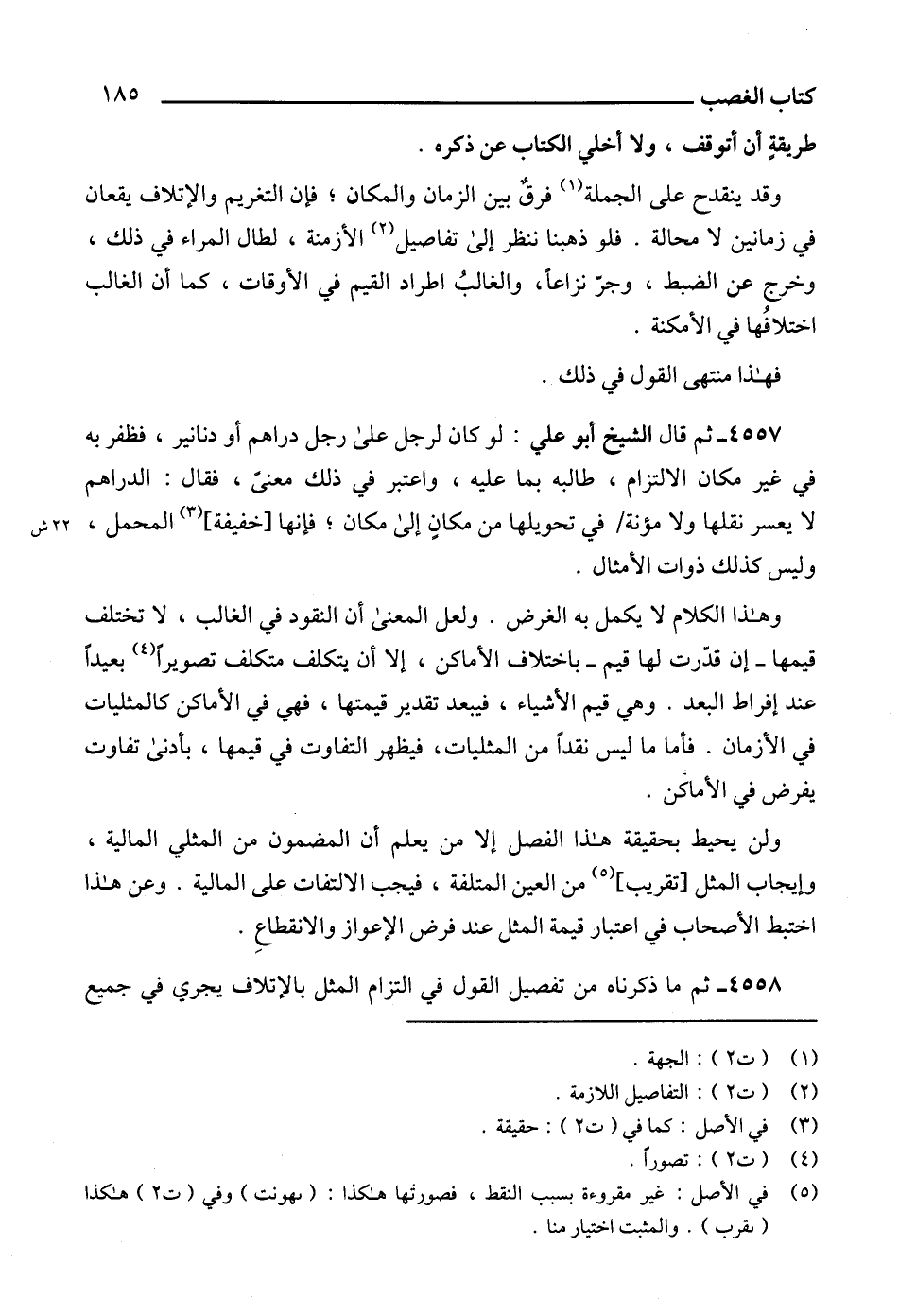 4558 - ثم ما ذكرناه من تفصيل القول في التزام المثل بالإتلاف يجري في جميع