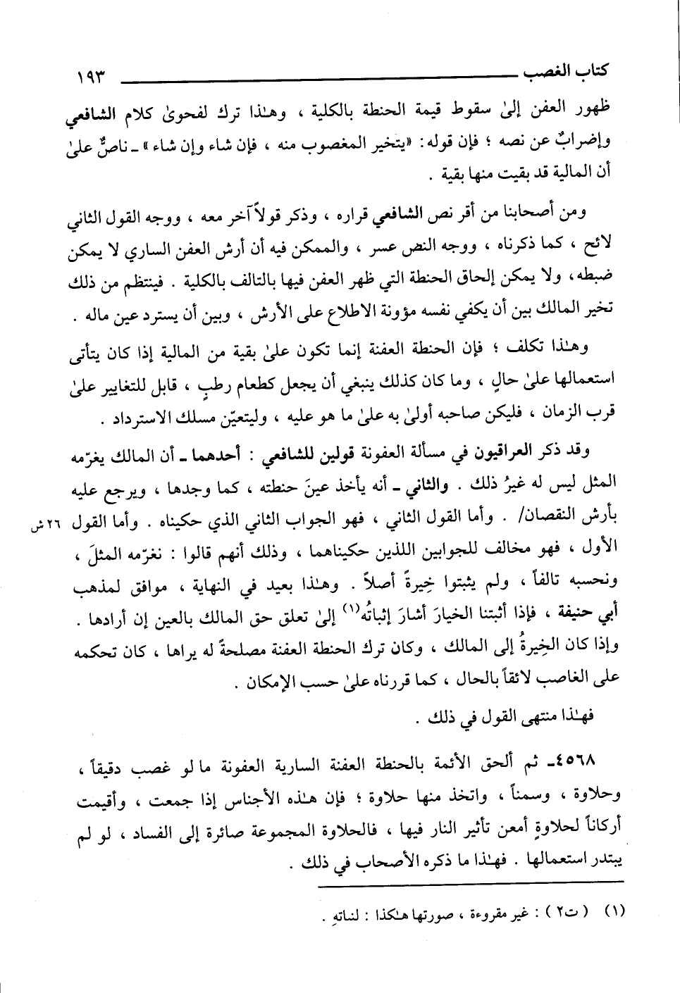 4568 - ثم ألحق الأئمة بالحنطة العفنة السارية العفونة ما لو غصب دقيقاً، وحلاوة، وسمناً، واتخذ منها حلاوة؛ فإن هذه الأجناس إذا جمعت، وأقيمت أركاناً لحلاوةٍ أمعن تأثير النار فيها، فالحلاوة المجموعة صائرة إلى الفساد، لو لم يبتدر استعمالها. فهذا ما ذكره الأصحاب في ذلك.