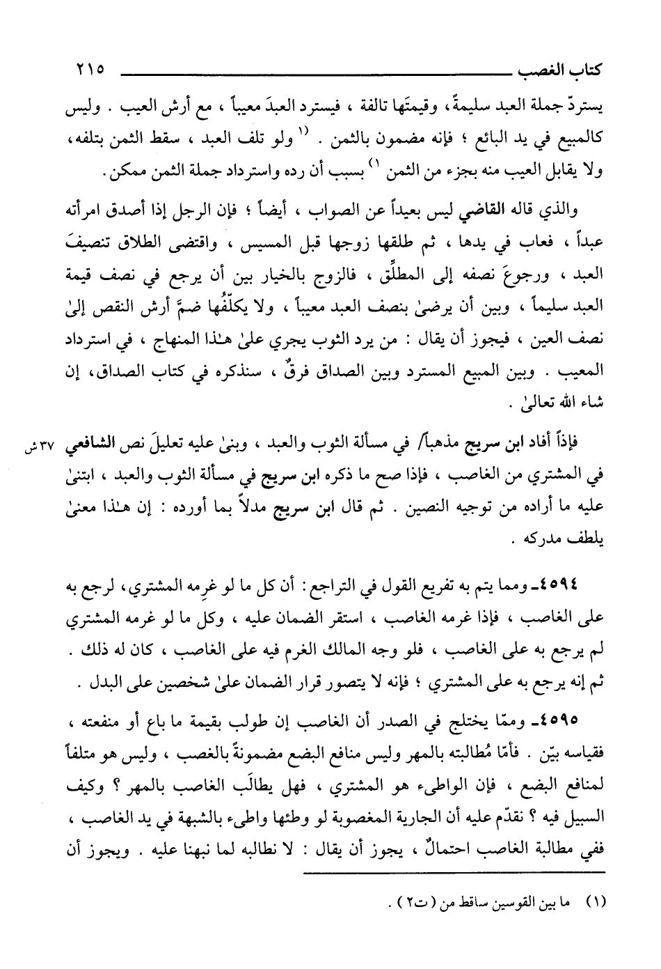 فإذاً أفاد ابن سريج مذهباً في مسألة الثوب والعبد، وبنى عليه تعليلَ نص الشافعي في المشتري من الغاصب، فإذا صح ما ذكره ابن سريج في مسألة الثوب والعبد، ابتنى عليه ما أراده من توجيه النصين. ثم قال ابن سريج مدلاً بما أورده: إن هذا معنى يلطف مدركه.