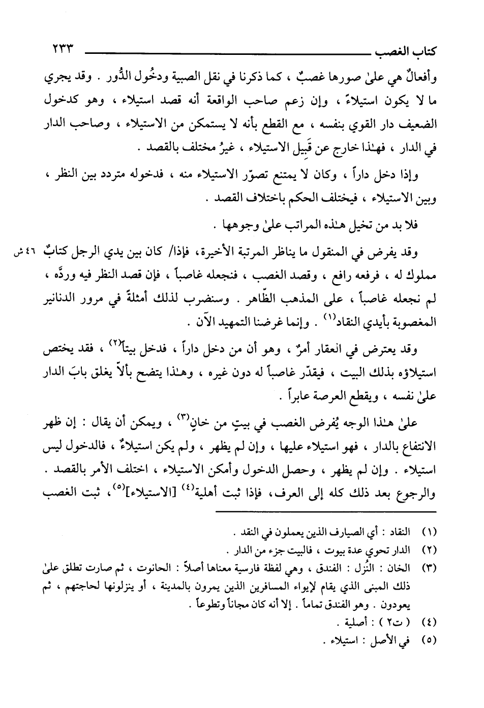 وقد يفرض في المنقول ما يناظر المرتبة الأخيرة، فإذا كان بين يدي الرجل كتابٌ مملوك له، فرفعه رافع، وقصد الغصب، فنجعله غاصباً، فإن قصد النظر فيه وردَّه، لم نجعله غاصباً، على المذهب الظّاهر. وسنضرب لذلك أمثلةً في مرور الدنانير المغصوبة بأيدي النقاد (1). وإنما غرضنا التمهيد الآن.