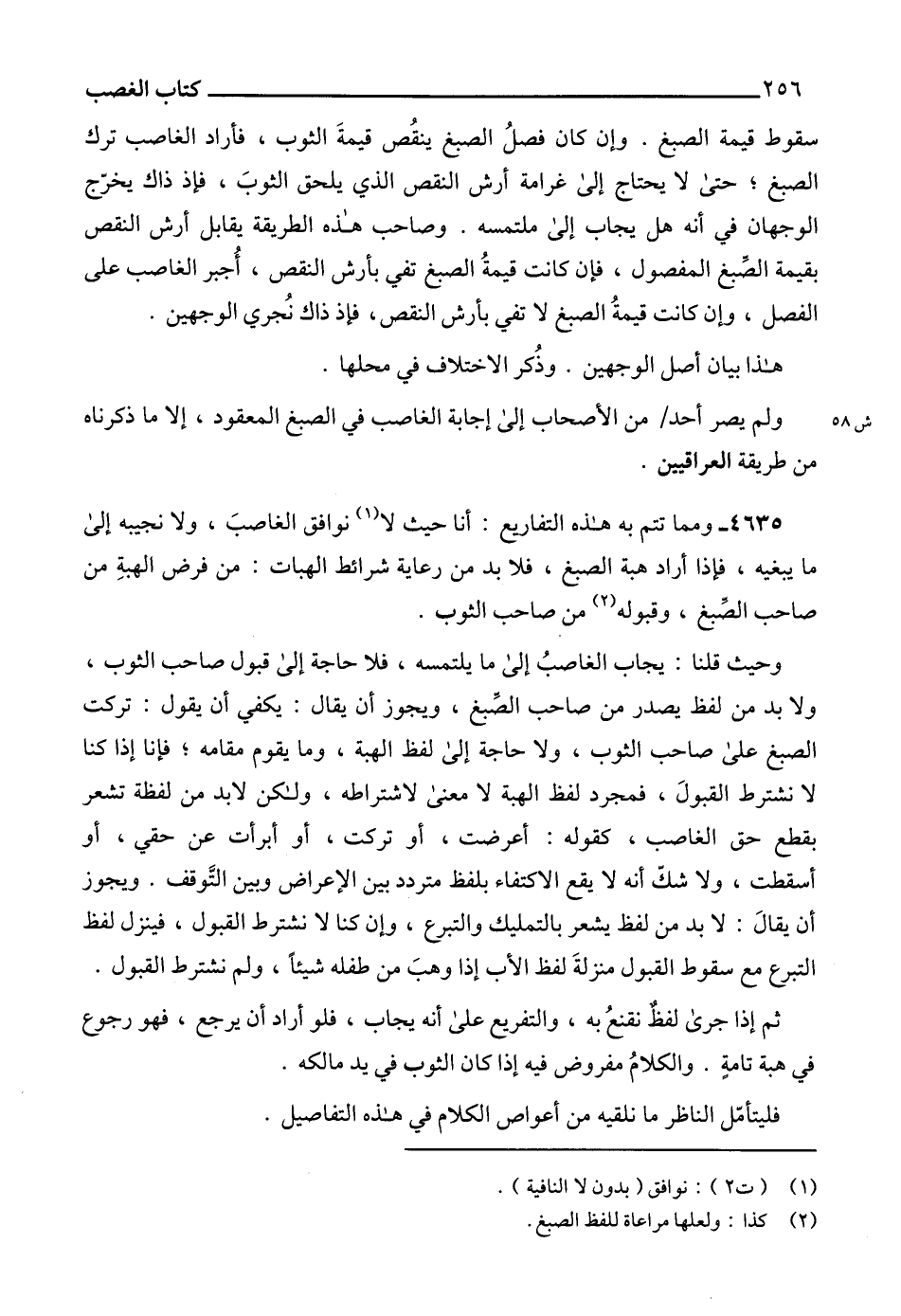 4635 - ومما تتم به هذه التفاريع: أنا حيث لا (1) نوافق الغاصبَ، ولا نجيبه إلى ما يبغيه، فإذا أراد هبة الصبغ، فلا بد من رعاية شرائط الهبات: من فرض الهبةِ من صاحب الصِّبغ، وقبوله (2) من صاحب الثوب.