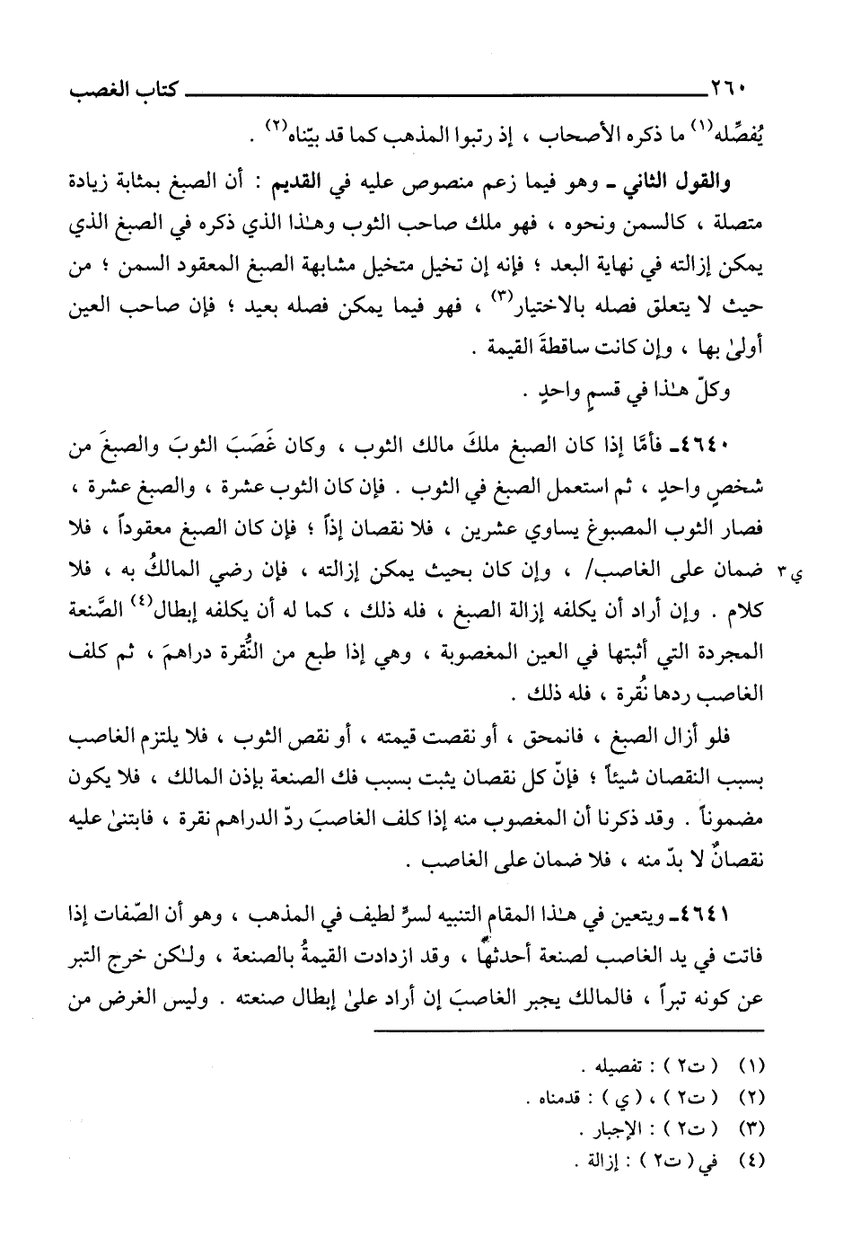 4641 - ويتعين في هذا المقام التنبيه لسرٍّ لطيف في المذهب، وهو أن الصّفات إذا فاتت في يد الغاصب لصنعة أحدثها، وقد ازدادت القيمةُ بالصنعة، ولكن خرج التبر عن كونه تبراً، فالمالك يجبر الغاصبَ إن أراد على إبطال صنعته. وليس الغرض من