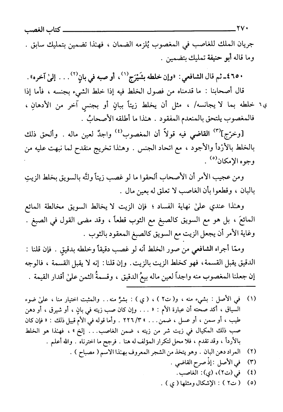 ومن عجيب الأمر أن الأصحاب ألحقوا ما لو غصب زيتاً ولتَّه بالسويق بخلط الزيتِ بالبان، وقطعوا بأن الغاصب لا تعلق له بعين مال.