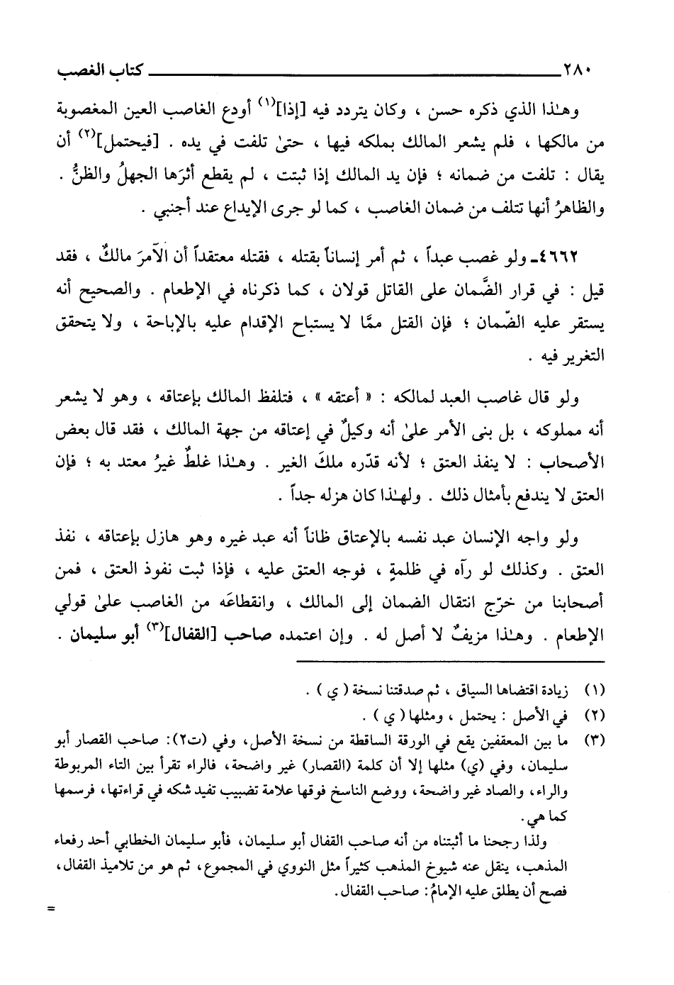 ولذا رجحنا ما أثبتناه من أنه صاحب القفال أبو سليمان، فأبو سليمان الخطابي أحد رفعاء المذهب، ينقل عنه شيوخ المذهب كثيراً مثل النووي في المجموع، ثم هو من تلاميذ القفال، فصح أن يطلق عليه الإمامُ: صاحب القفال. =