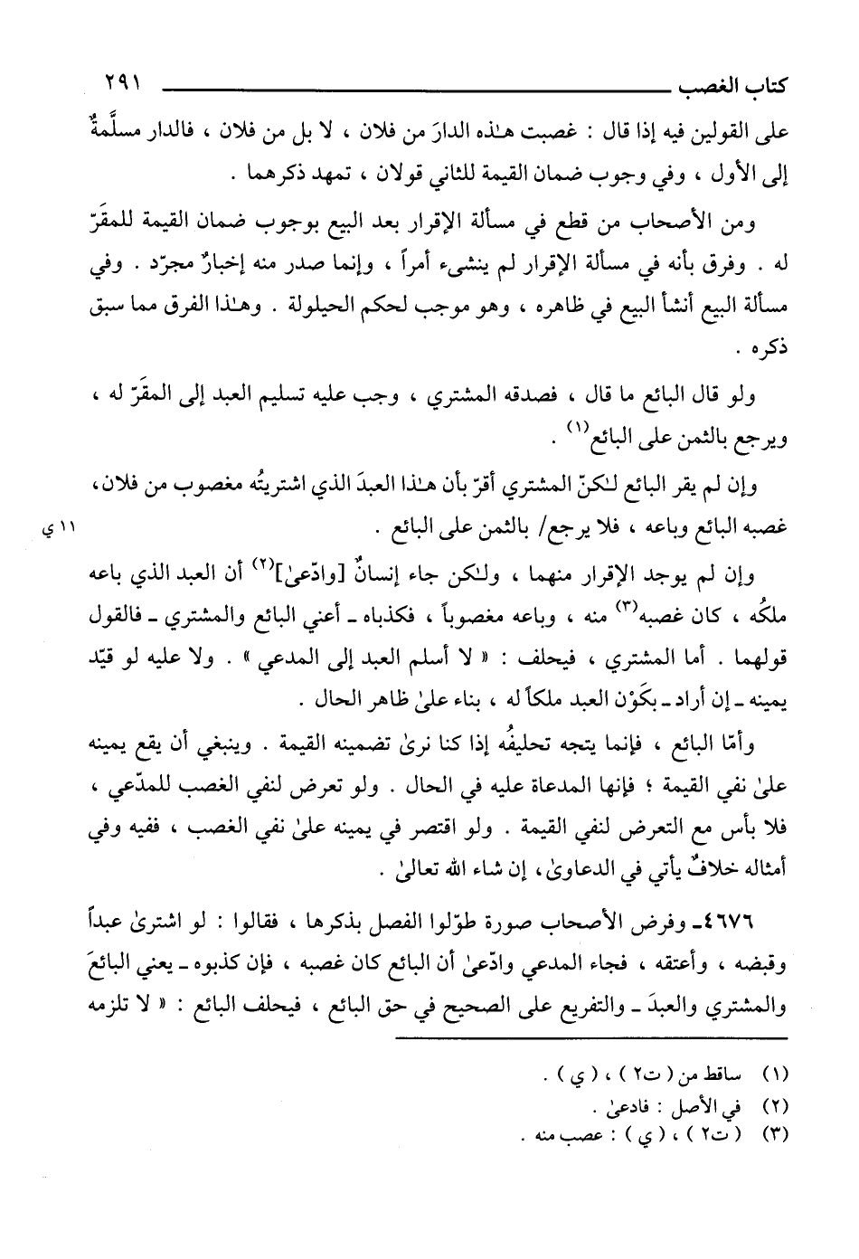 وأمّا البائع، فإنما يتجه تحليفُه إذا كنا نرى تضمينه القيمة. وينبغي أن يقع يمينه على نفي القيمة؛ فإنها المدعاة عليه في الحال. ولو تعرض لنفي الغصب للمدّعي، فلا بأس مع التعرض لنفي القيمة. ولو اقتصر في يمينه على نفي الغصب، ففيه وفي أمثاله خلافٌ يأتي في الدعاوى، إن شاء الله تعالى.