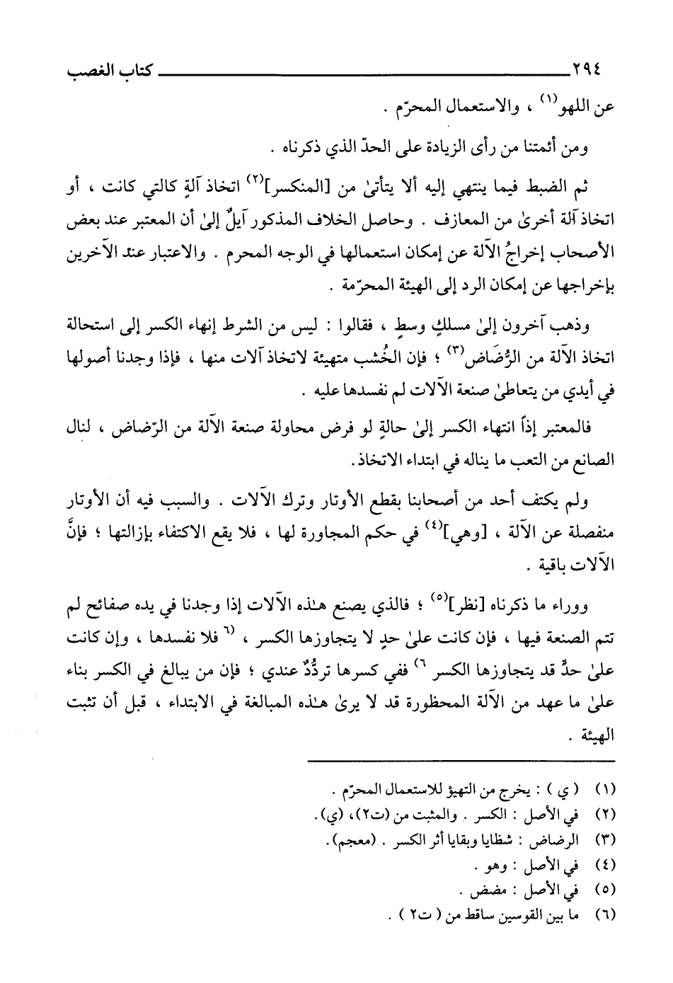 ثم الضبط فيما ينتهي إليه ألا يتأتى من [المنكسر] (2) اتخاذ آلةٍ كالتي كانت، أو اتخاذ آلة أخرى من المعازف. وحاصل الخلاف المذكور آيلٌ إلى أن المعتبر عند بعض الأصحاب إخراجُ الآلة عن إمكان استعمالها في الوجه المحرم. والاعتبار عند الآخرين بإخراجها عن إمكان الرد إلى الهيئة المحرّمة.