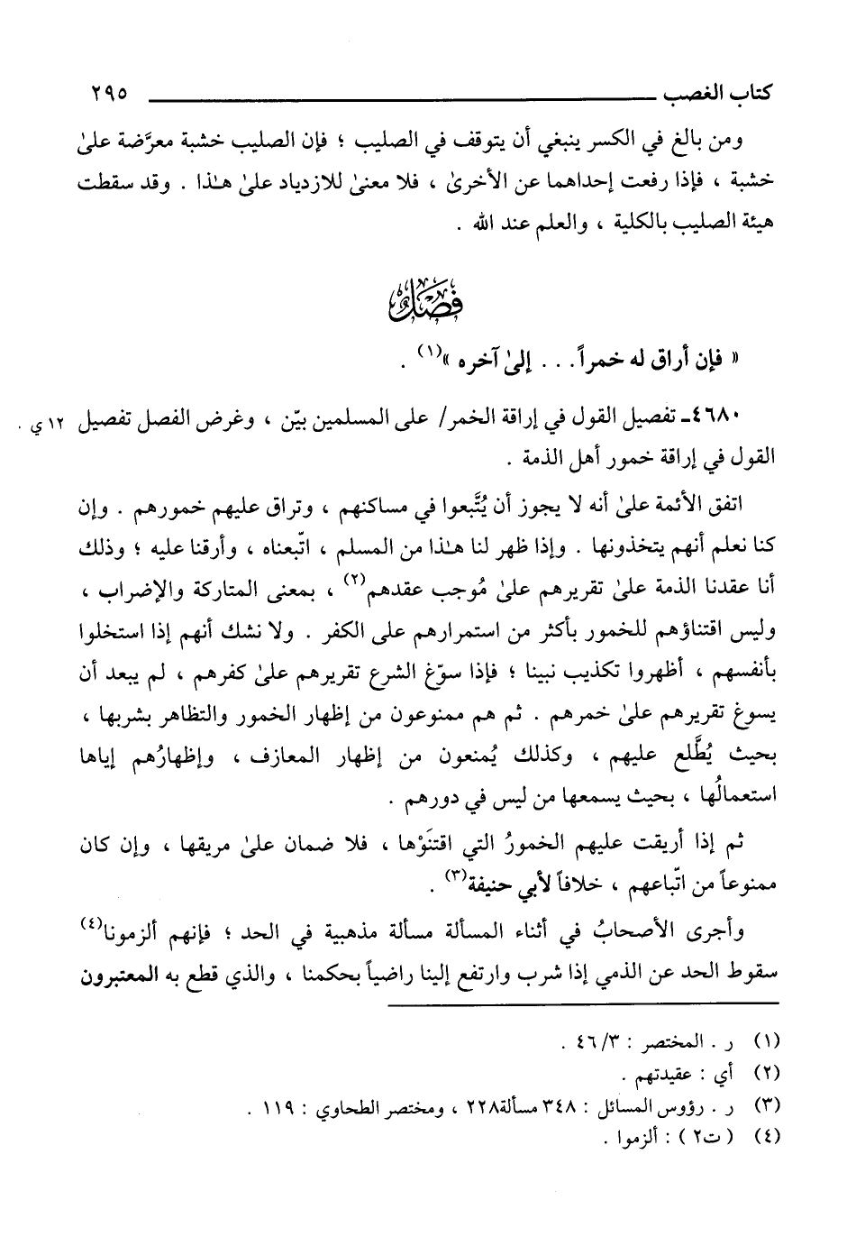 4680 - تفصيل القول في إراقة الخمر على المسلمين بيّن، وغرض الفصل تفصيل القول في إراقة خمور أهل الذمة.