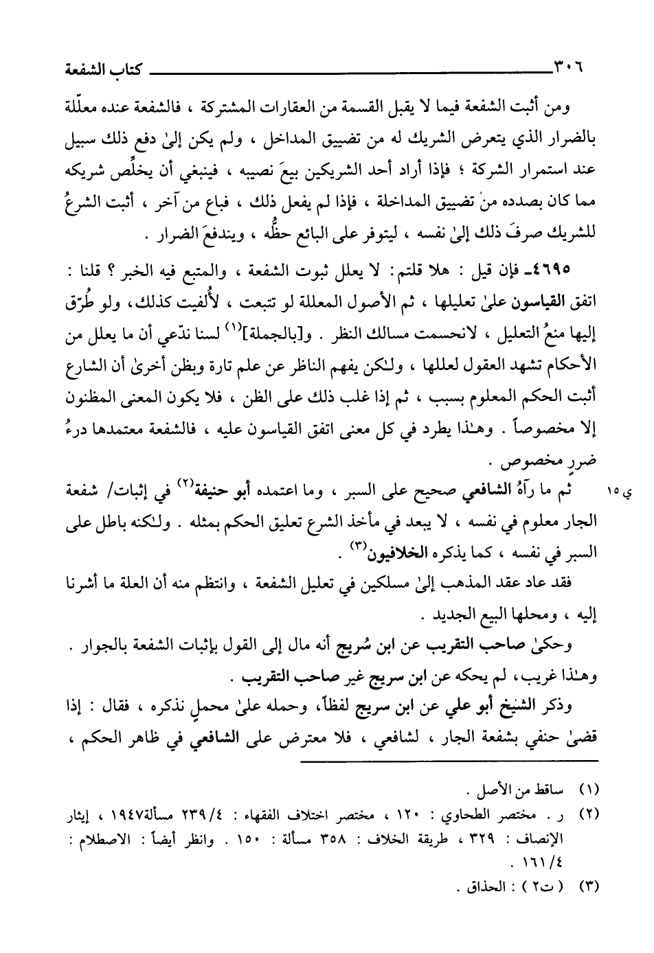 (2) ر. مختصر الطحاوي: 120، مختصر اختلاف الفقهاء:4/ 239 مسألة 1947، إيثار الإنصاف: 329، طريقة الخلاف: 358 مسألة: 150. وانظر أيضاً: الاصطلام: 4/ 161.