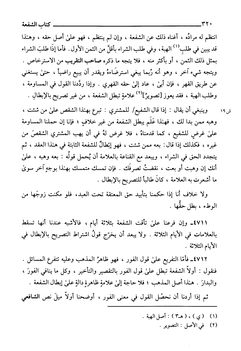 4712 - فأمّا التفريع على قول الفور، فهو ظاهرُ المذهب وعليه تتفرع المسائل.