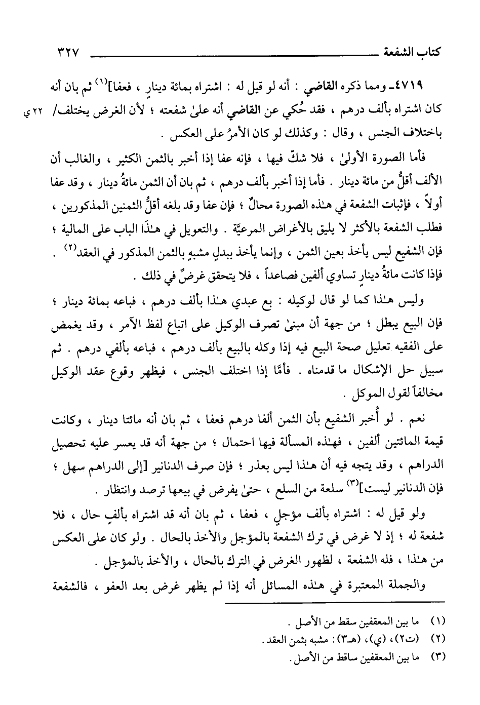 فأما الصورة الأولى، فلا شكّ فيها، فإنه عفا إذا أخبر بالثمن الكثير، والغالب أن الألف أقلُّ من مائة دينار. فأما إذا أخبر بألف درهم، ثم بان أن الثمن مائةُ دينار، وقد عفا أولاً، فإثبات الشفعة في هذه الصورة محالٌ؛ فإن عفا وقد بلغه أقلُّ الثمنين المذكورين، فطلب الشفعة بالأكثر لا يليق بالأغراض المرعيَّة. والتعويل في هذَا الباب على المالية؛ فإن الشفيع ليس يأخذ بعين الثمن، وإنما يأخذ ببدلٍ مشبهٍ بالثمن المذكور في العقد (2).