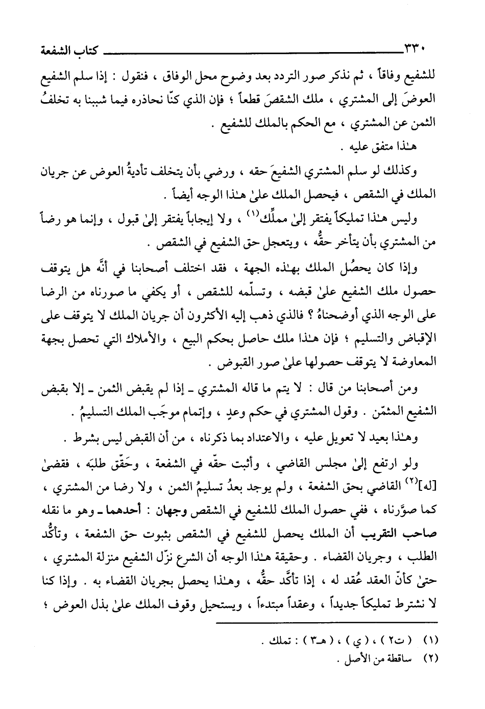 وليس هذا تمليكاً يفتقر إلى مملِّك (1)، ولا إيجاباً يفتقر إلى قبول، وإنما هو رضاً من المشتري بأن يتأخر حقُّه، ويتعجل حق الشفيع في الشقص.