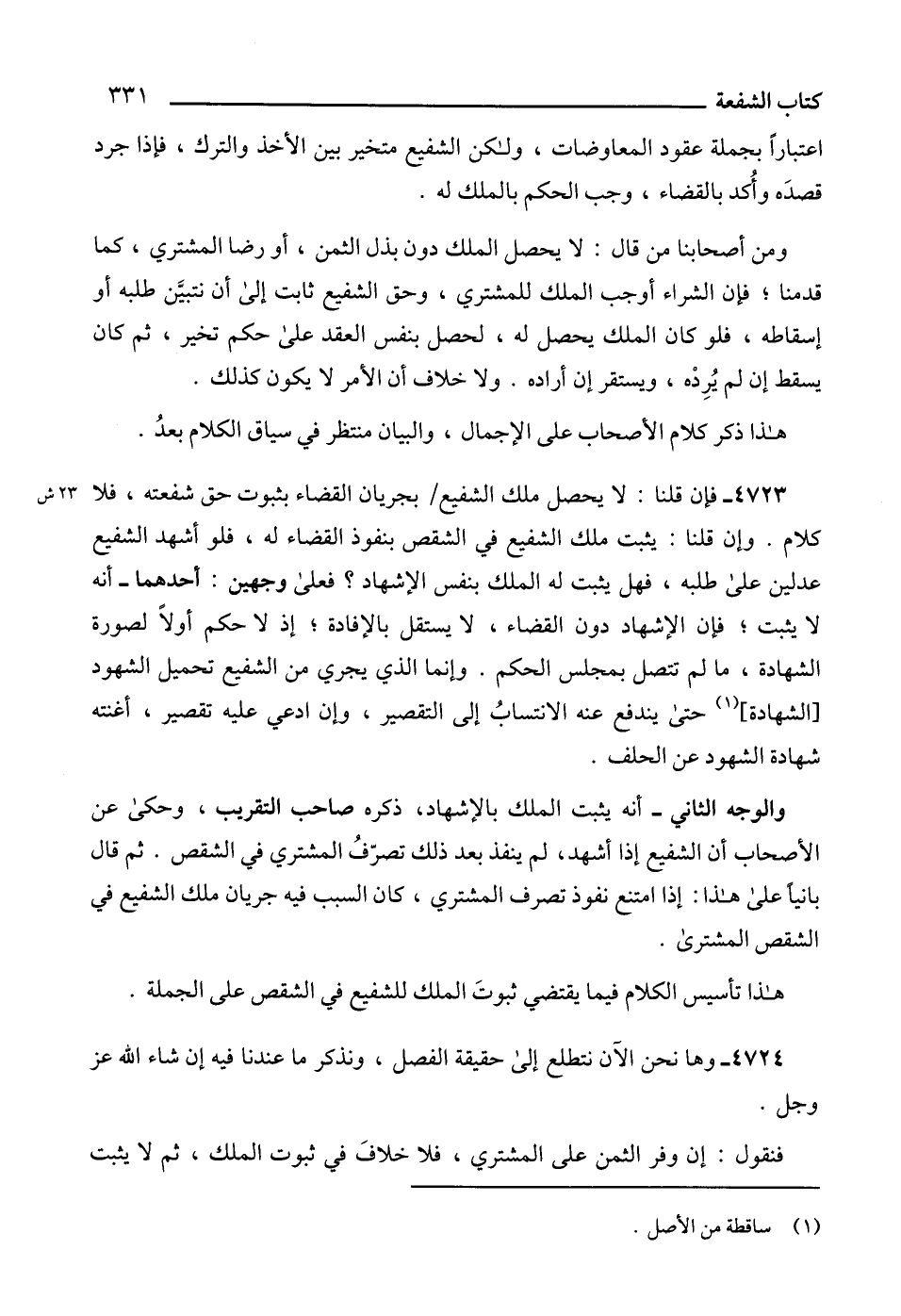 هذا تأسيس الكلام فيما يقتضي ثبوتَ الملك للشفيع في الشقص على الجملة.