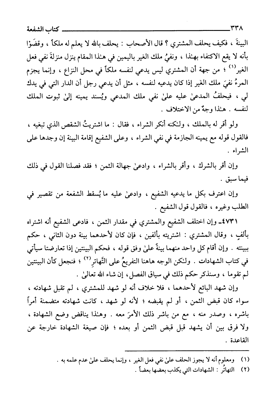 4731 - وإن اختلف الشفيع والمشتري في مقدار الثمن، فادعى الشفيع أنه اشتراه بألفٍ، وقال المشتري: اشتريته بألفين، فإن كان لأحدهما بينة دون الثاني، حكم ببينته. وإن أقام كل واحد منهما بينةً على وفق قوله، فحكم البينتين إذا تعارضتا سيأتي في كتاب الشهادات. ولكن الوجه هاهنا التفريعُ على التَّهاترِ (2)؛ فنجعل كأن البينتين لم تقوما، وسنذكر حكم ذلك في سياق الفصل، إن شاء الله تعالى.