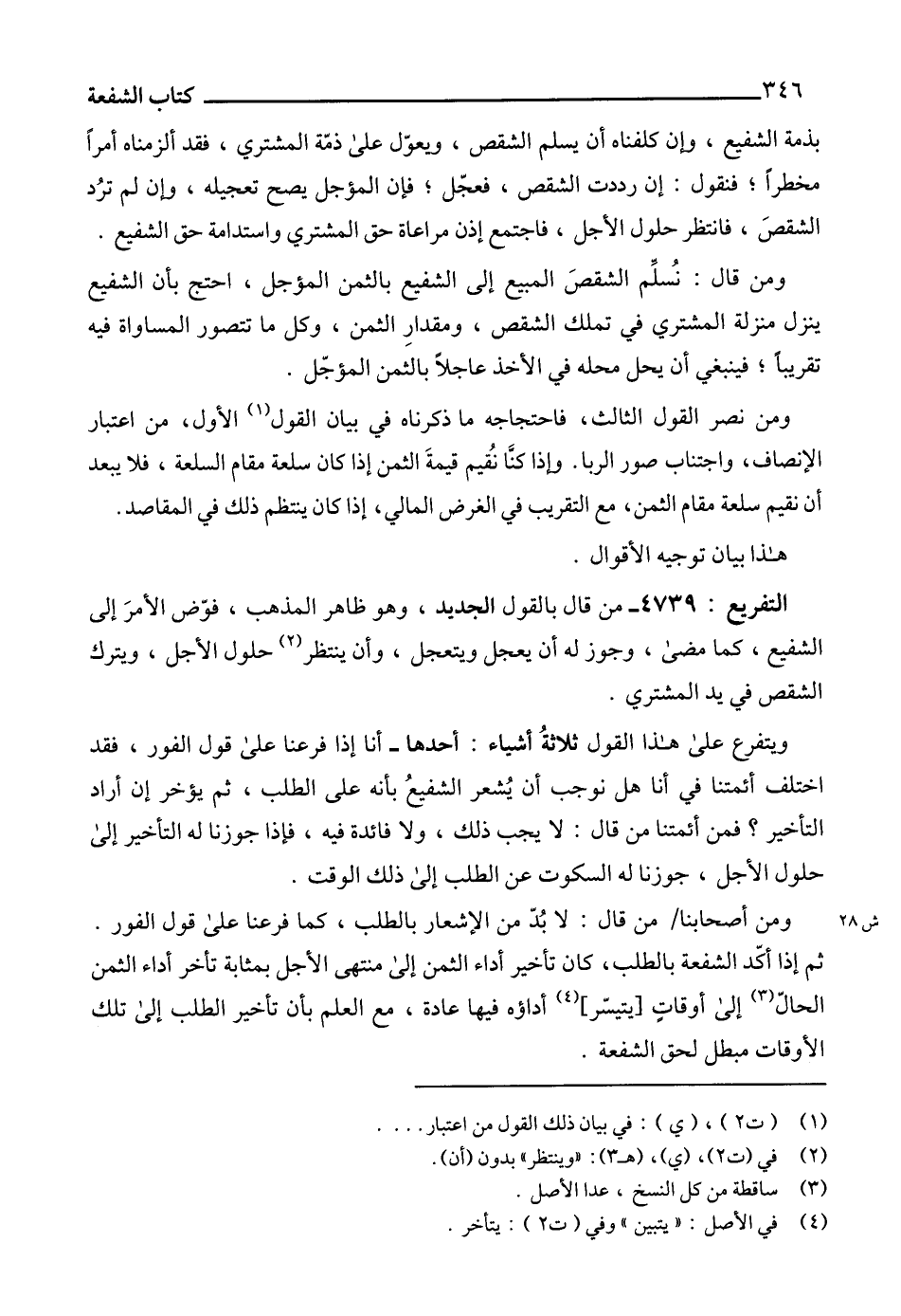 4739 - من قال بالقول الجديد، وهو ظاهر المذهب، فوّض الأمرَ إلى الشفيع، كما مضى، وجوز له أن يعجل ويتعجل، وأن ينتظر (2) حلول الأجل، ويترك الشقص في يد المشتري.