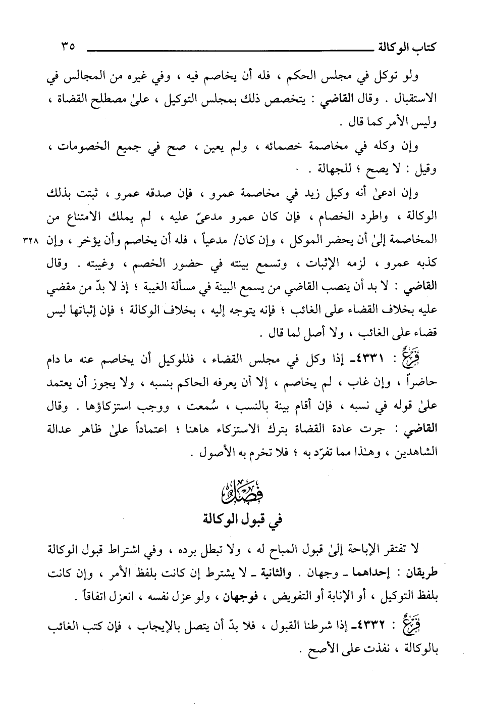 4331 - إذا وكل في مجلس القضاء، فللوكيل أن يخاصم عنه ما دام حاضراً، وإن غاب، لم يخاصم، إلا أن يعرفه الحاكم بنسبه، ولا يجوز أن يعتمد على قوله في نسبه، فإن أقام بينة بالنسب، سُمعت، ووجب استزكاؤها. وقال القاضي: جرت عادة القضاة بترك الاستزكاء هاهنا؛ اعتماداً على ظاهر عدالة الشاهدين، وهذا مما تفرّد به؛ فلا تخرم به الأصول.