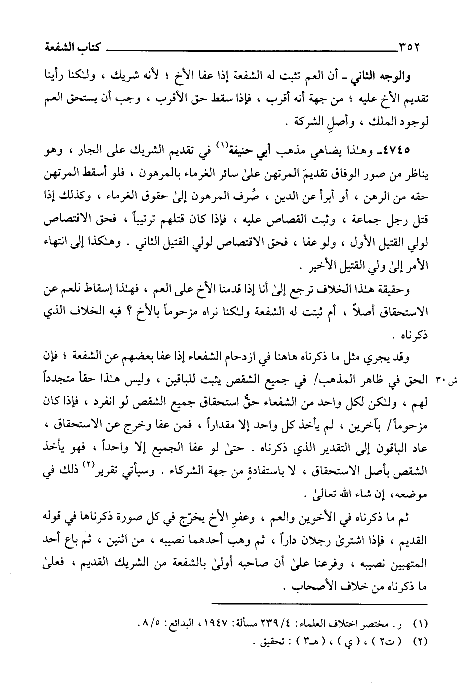 4745 - وهذا يضاهي مذهب أبي حنيفة (1) في تقديم الشريك على الجار، وهو يناظر من صور الوفاق تقديمَ المرتهن على سائر الغرماء بالمرهون، فلو أسقط المرتهن حقه من الرهن، أو أبرأ عن الدين، صُرف المرهون إلى حقوق الغرماء، وكذلك إذا قتل رجل جماعة، وثبت القصاص عليه، فإذا كان قتلهم ترتيباً، فحق الاقتصاص لولي القتيل الأول، ولو عفا، فحق الاقتصاص لولي القتيل الثاني. وهكذا إلى انتهاء الأمر إلى ولي القتيل الأخير.