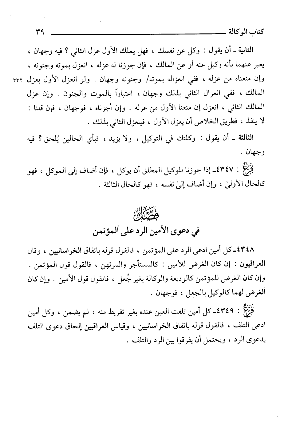 4348 - كل أمين ادعى الرد على المؤتمن، فالقول قوله باتفاق الخراسانيين، وقال العراقيون: إن كان الغرض للأمين: كالمستأجر والمرتهن، فالقول قول المؤتمن.