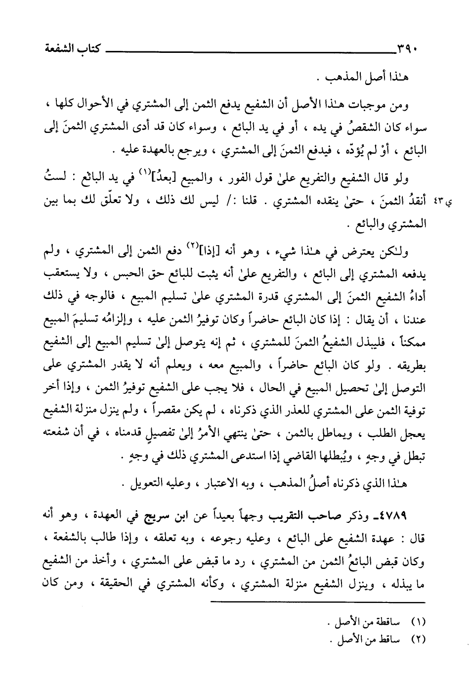 ومن موجبات هذا الأصل أن الشفيع يدفع الثمن إلى المشتري في الأحوال كلها، سواء كان الشقصُ في يده، أو في يد البائع، وسواء كان قد أدى المشتري الثمنَ إلى البائع، أوْ لم يُؤدّه، فيدفع الثمنَ إلى المشتري، ويرجع بالعهدة عليه.