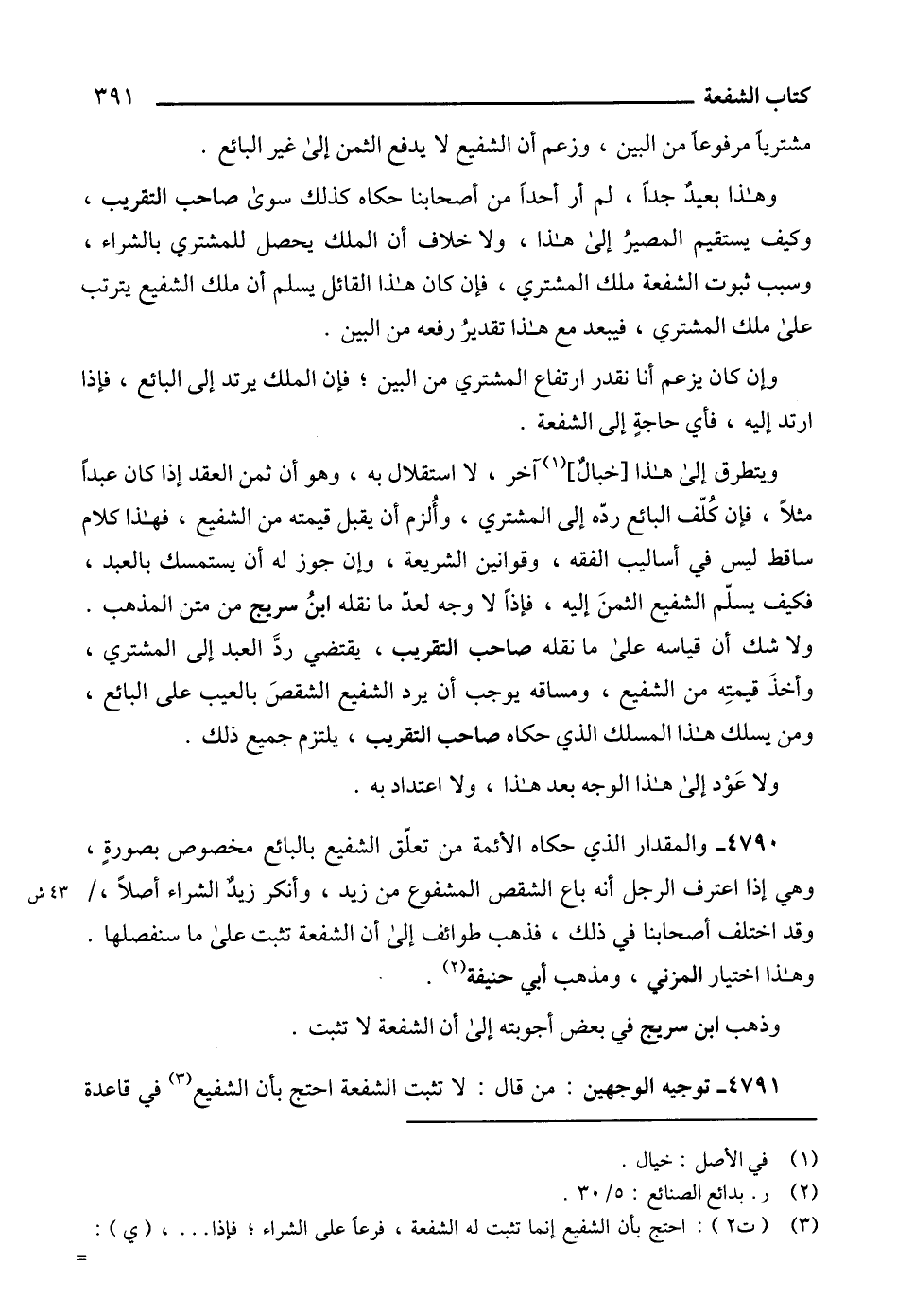 4791 - توجيه الوجهين: من قال: لا تثبت الشفعة احتج بأن الشفيع (3) في قاعدة
