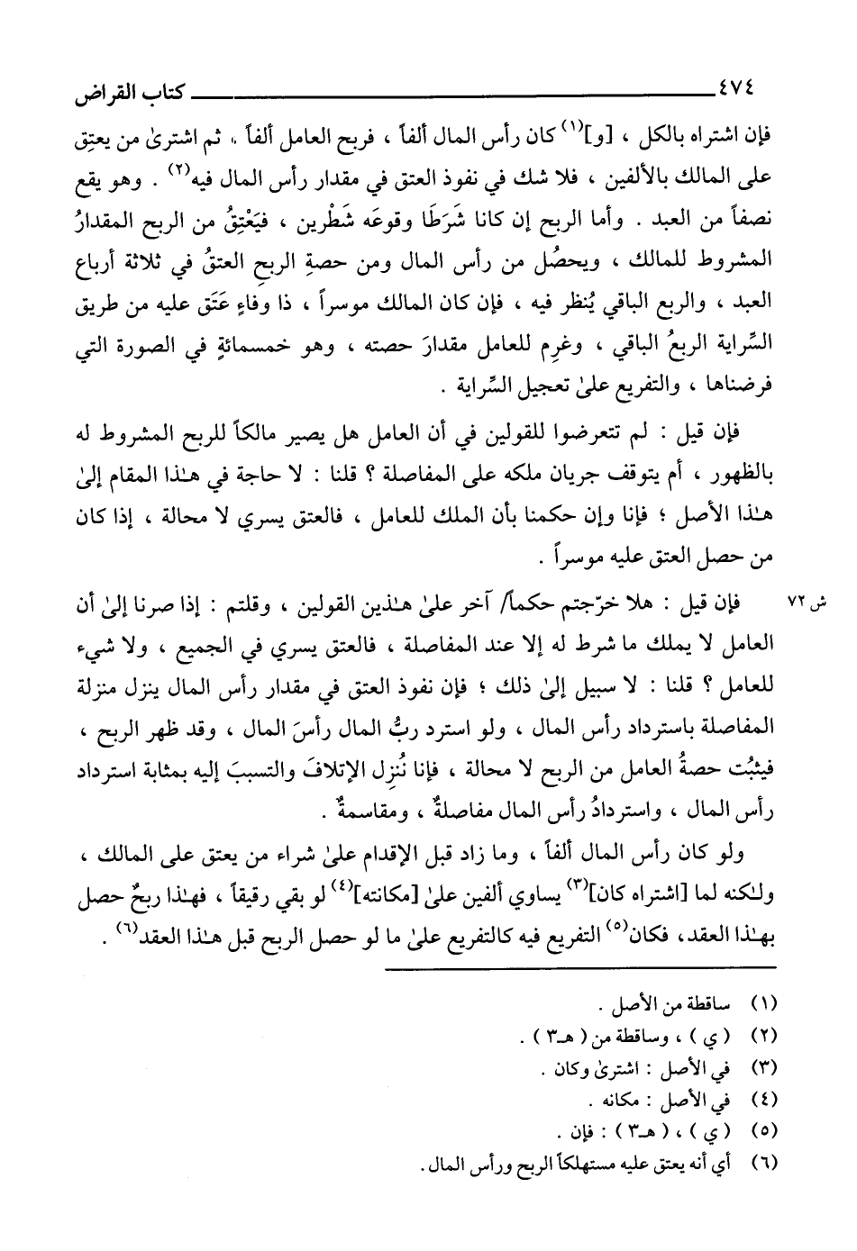 (6) أي أنه يعتق عليه مستهلكاً الربح ورأس المال.