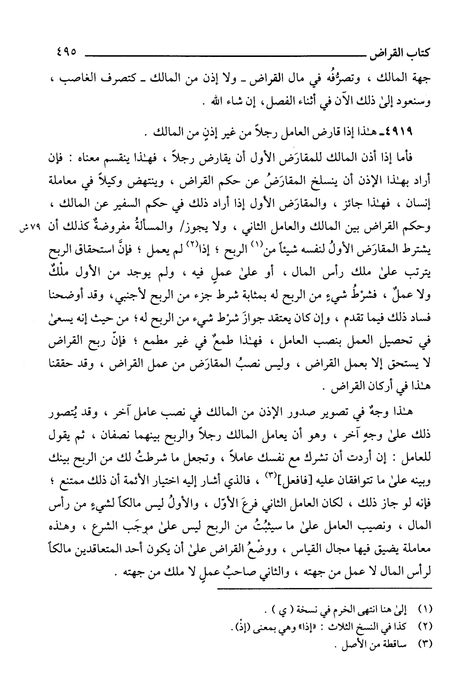 4919 - هذا إذا قارض العامل رجلاً من غير إذنٍ من المالك.