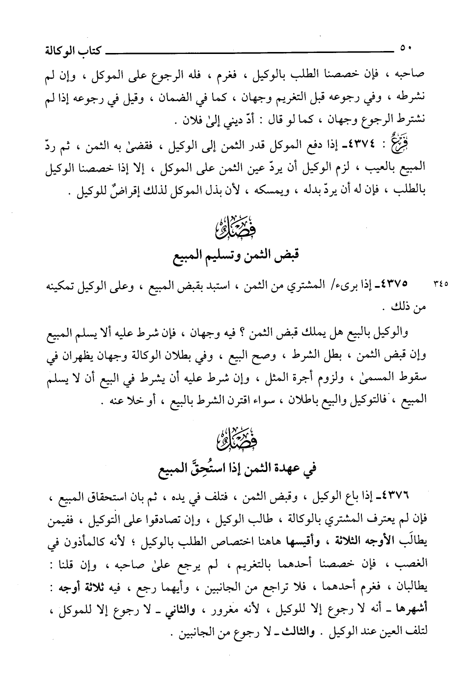 4375 - إذا برىء المشتري من الثمن، استبد بقبض المبيع، وعلى الوكيل تمكينه من ذلك.