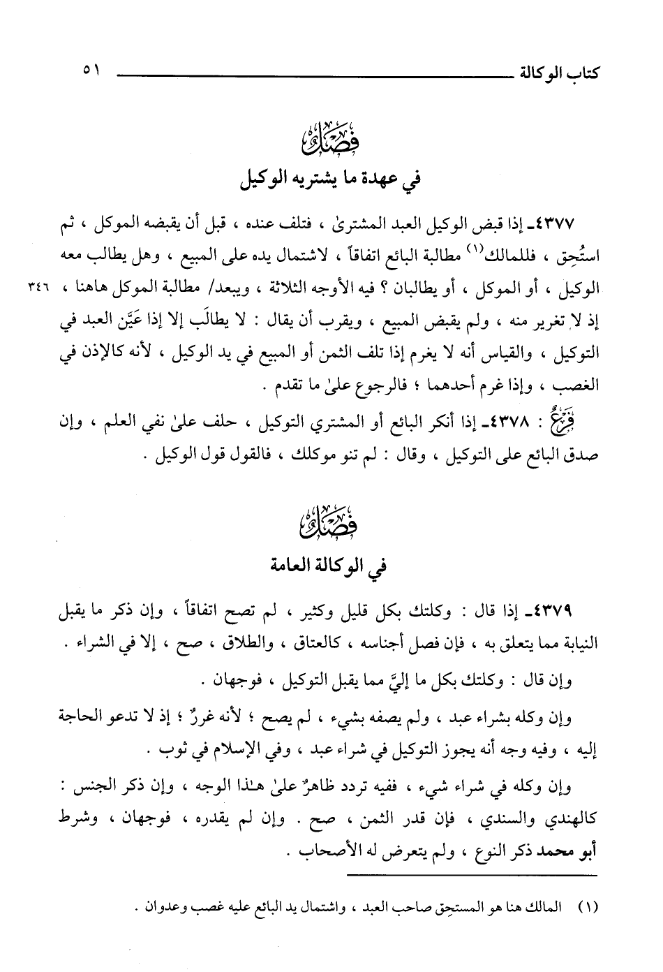 4378 - إذا أنكر البائع أو المشتري التوكيل، حلف على نفي العلم، وإن صدق البائع على التوكيل، وقال: لم تنو موكلك، فالقول قول الوكيل.