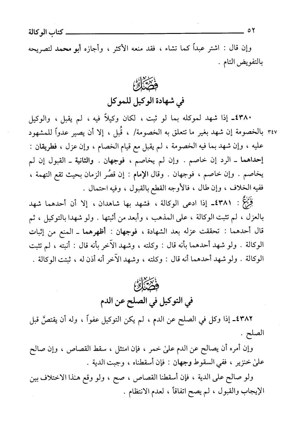 4382 - إذا وكل في الصلح عن الدم، لم يكن التوكيل عفواً، وله أن يقتصَّ قبل الصلح.