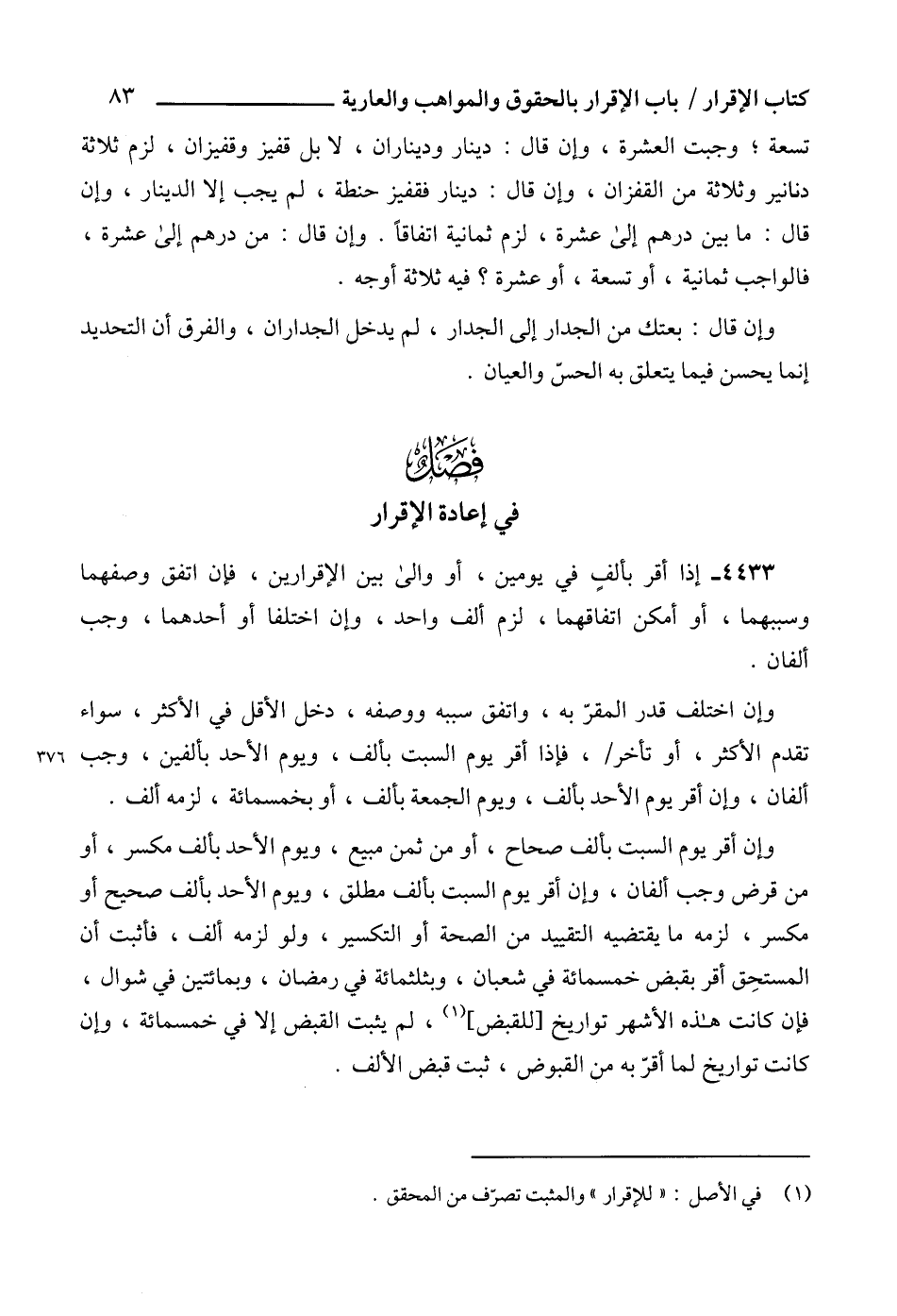 (1) في الأصل: "للإقرار" والمثبت تصرّف من المحقق.