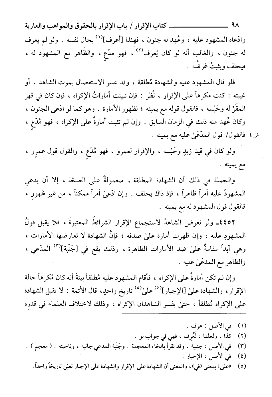 (5) "على" بمعنى "في"، والمعنى أن الشهادة على الإقرار والشهادة على الإجبار تعيّن تاريخاً واحداً.