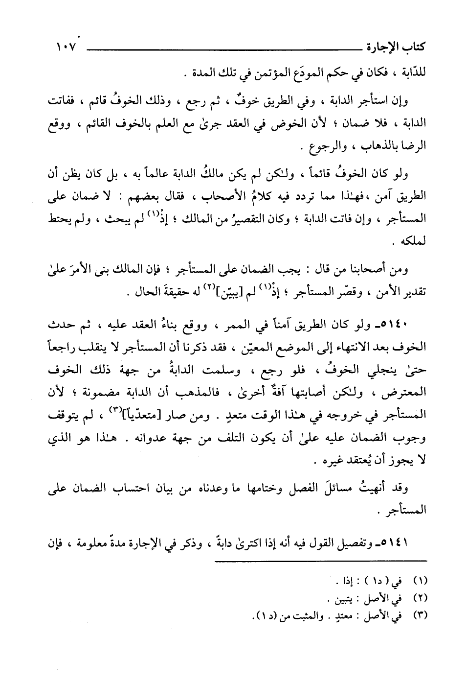 5140 - ولو كان الطريق آمناً في الممر، ووقع بناءُ العقد عليه، ثم حدث الخوف بعد الانتهاء إلى الموضع المعيّن، فقد ذكرنا أن المستأجر لا ينقلب راجعاًً حتى ينجلي الخوفُ، فلو رجع، وسلمت الدابةُ من جهة ذلك الخوف المعترض، ولكن أصابتها آفةٌ أخرى، فالمذهب أن الدابة مضمونة؛ لأن المستأجر في خروجه في هذا الوقت متعدٍ. ومن صار [متعدّياً] (3)، لم يتوقف وجوب الضمان عليه على أن يكون التلف من جهة عدوانه. هذا هو الذي لا يجوز أن يُعتقد غيره.