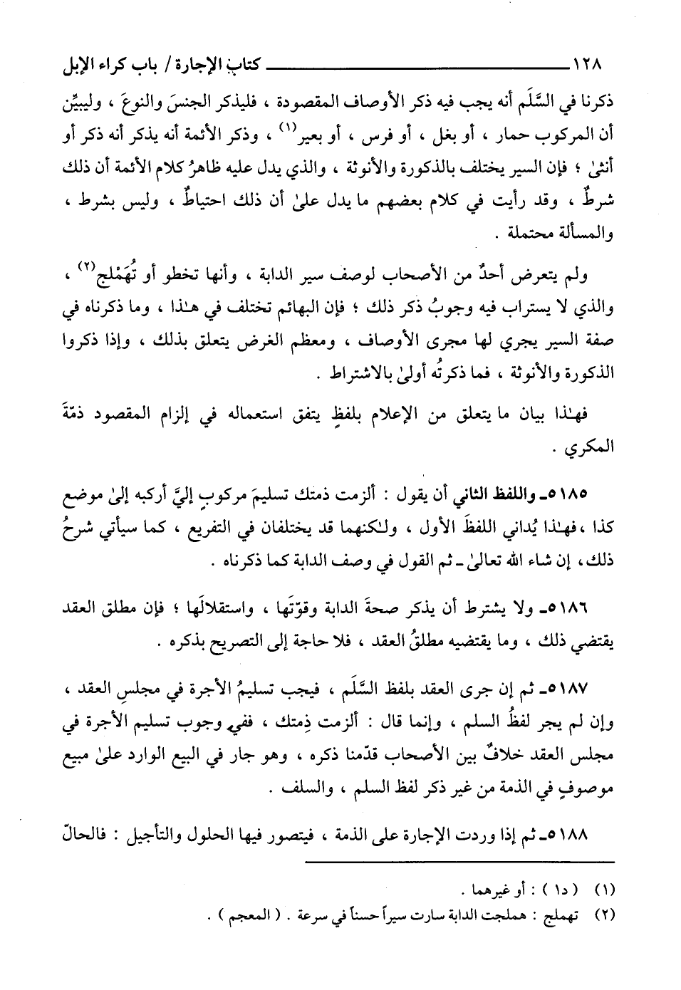 5185 - واللفظ الثاني أن يقول: ألزمت ذمتك تسليمَ مركوبٍ إليَّ أركبه إلى موضع كذا، فهذا يُداني اللفظَ الأول، ولكنهما قد يختلفان في التفريع، كما سيأتي شرحُ ذلك، إن شاء الله تعالى- ثم القول في وصف الدابة كما ذكرناه.
