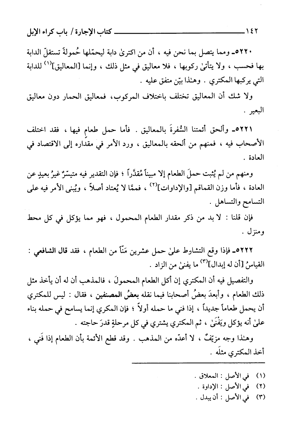 5221 - وألحق أئمتنا السُّفرةَ بالمعاليق. فأما حمل طعامٍ فيها، فقد اختلف الأصحاب فيه، فمنهم من ألحقه بالمعاليق، ورد الأمر في مقداره إلى الاقتصاد في العادة.