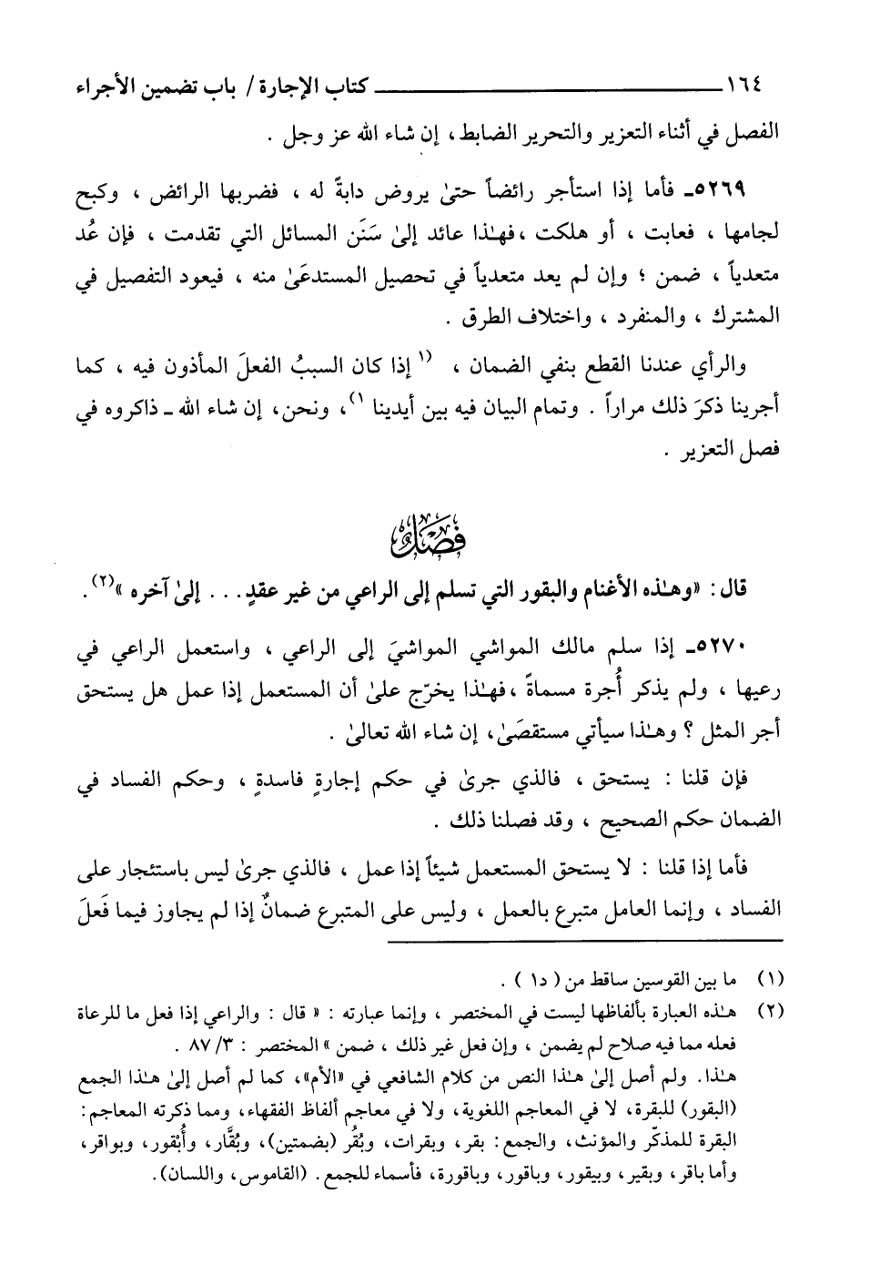 (2) هذه العبارة بألفاظها ليست في المختصر، وإنما عبارته: " قال: والراعي إذا فعل ما للرعاة فعله مما فيه صلاح لم يضمن، وإن فعل غير ذلك، ضمن " المختصر: 3/ 87.