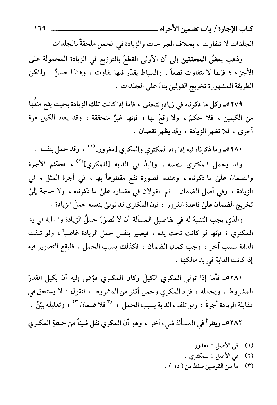 5281 - فأما إذا تولى المكري الكيلَ وكان المكتري فوّض إليه أن يكيل القدرَ المشروط، ويحملَه، فزاد المكري وحمل أكثر من المشروط، فنقول: لا يستحق في مقابلة الزيادة أجرةً، ولو تلفت الدابة بسبب الحمل، (3 فلا ضمان 3)، وتعليله بيِّنٌ.