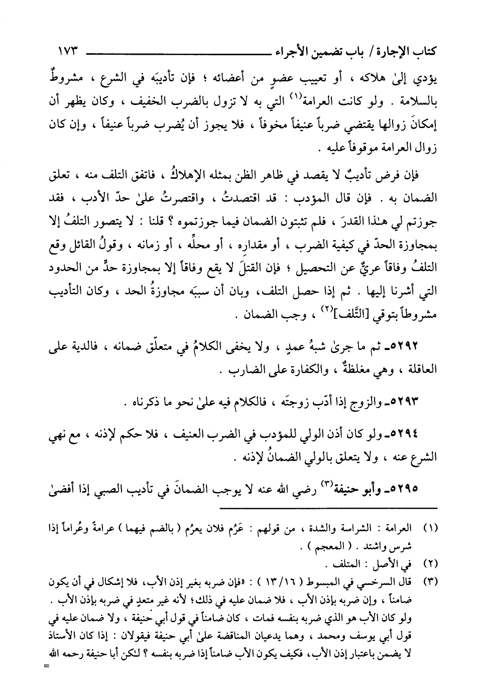 5295 - وأبو حنيفة (3) رضي الله عنه لا يوجب الضمانَ في تأديب الصبي إذا أفضى