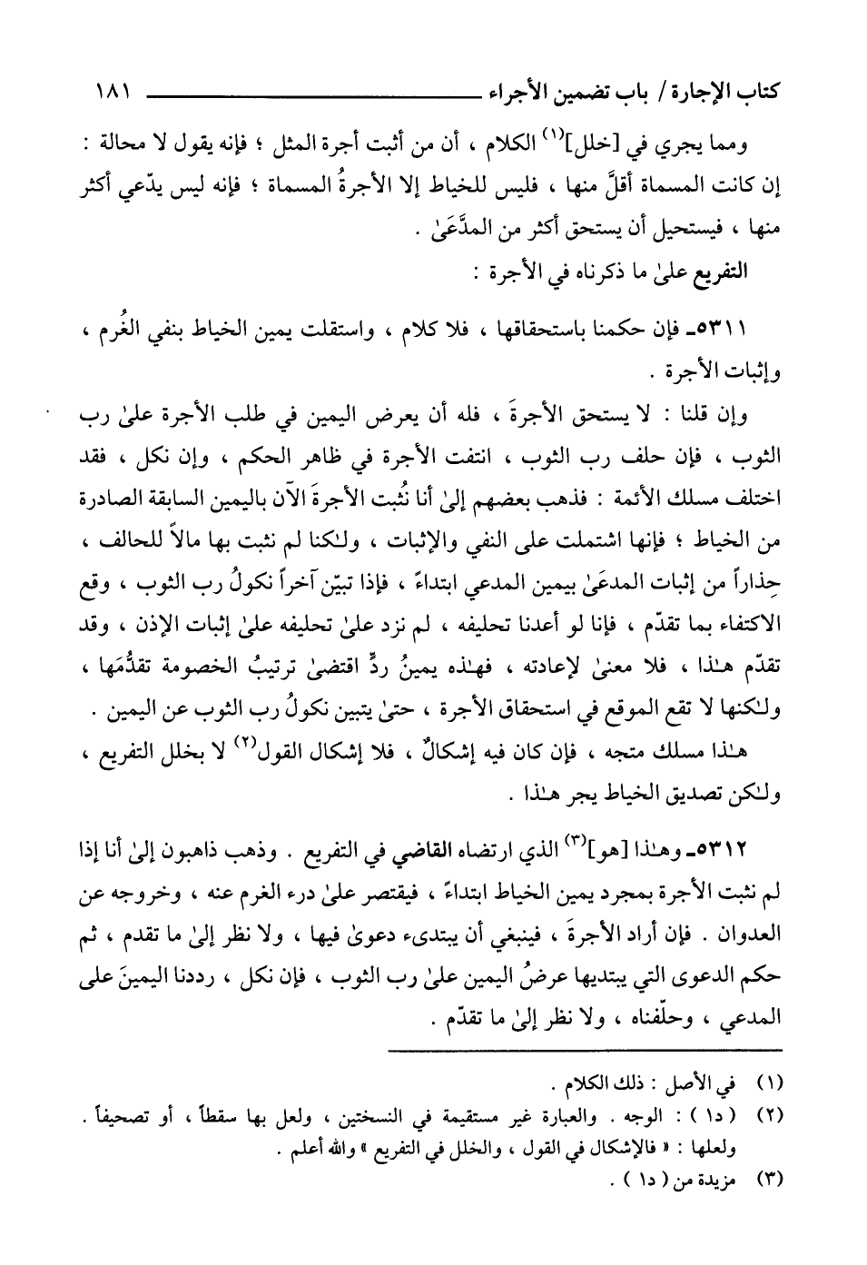 (2) (د 1): الوجه. والعبارة غير مستقيمة في النسختين، ولعل بها سقطاً، أو تصحيفاً. ولعلها: "فالإشكال في القول، والخلل في التفريع" والله أعلم.