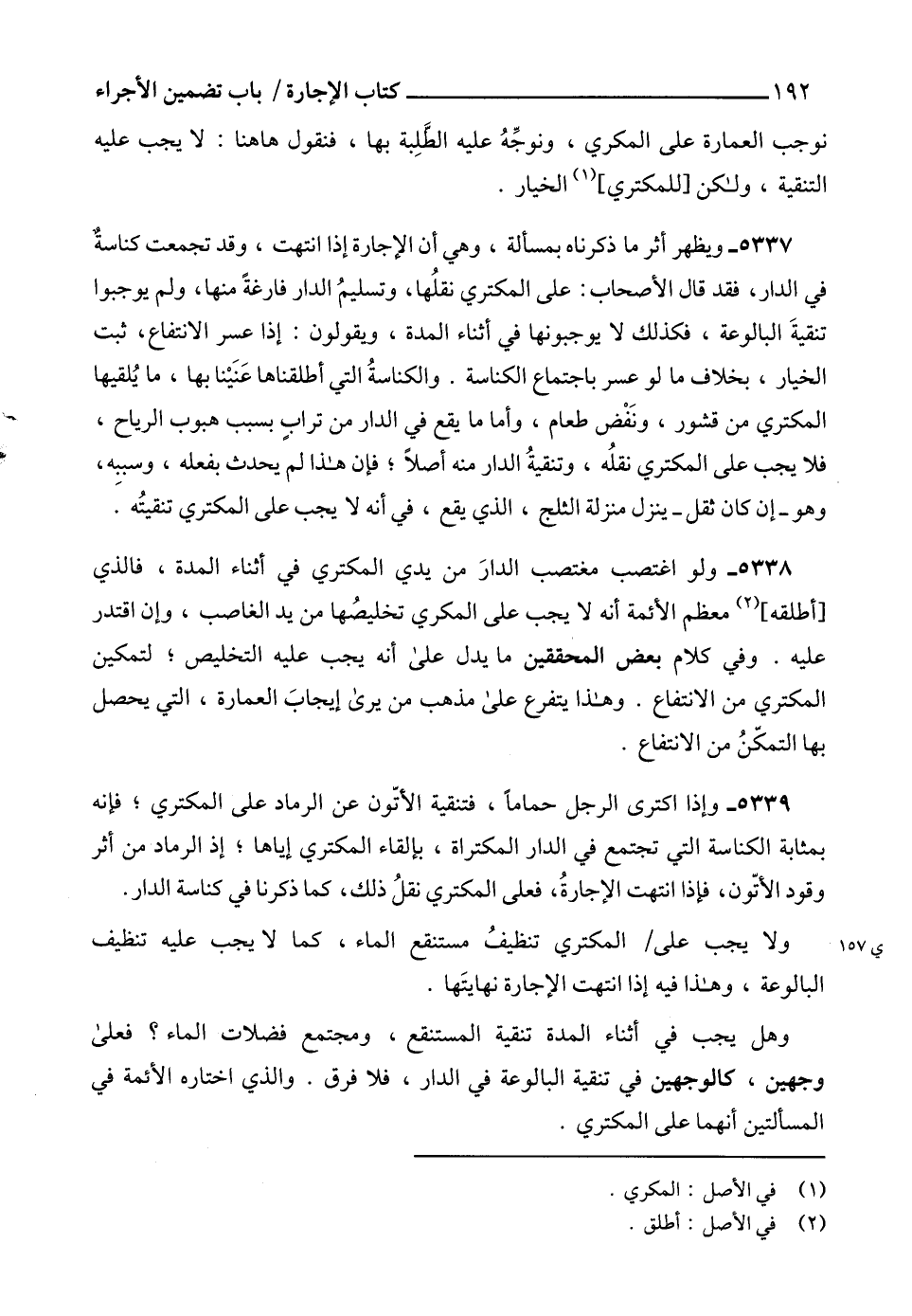 ولا يجب على المكتري تنظيفُ مستنقع الماء، كما لا يجب عليه تنظيف البالوعة، وهذا فيه إذا انتهت الإجارة نهايتَها.