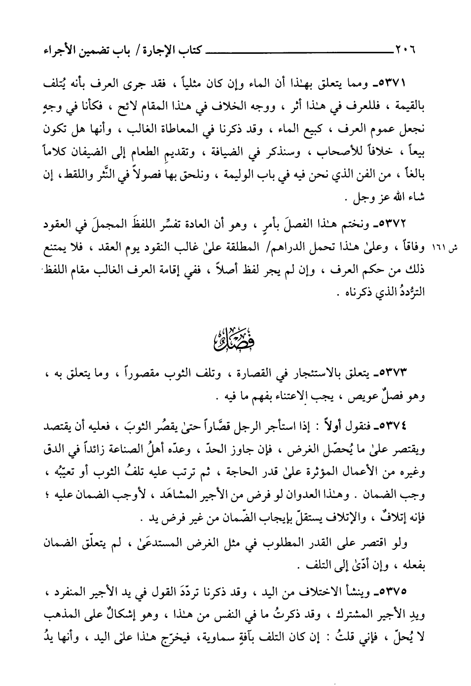 5373 - يتعلق بالاستئجار في القصارة، وتلف الثوب مقصوراً، وما يتعلق به، وهو فصلٌ عويص، يجب إلاعتناء بفهم ما فيه.