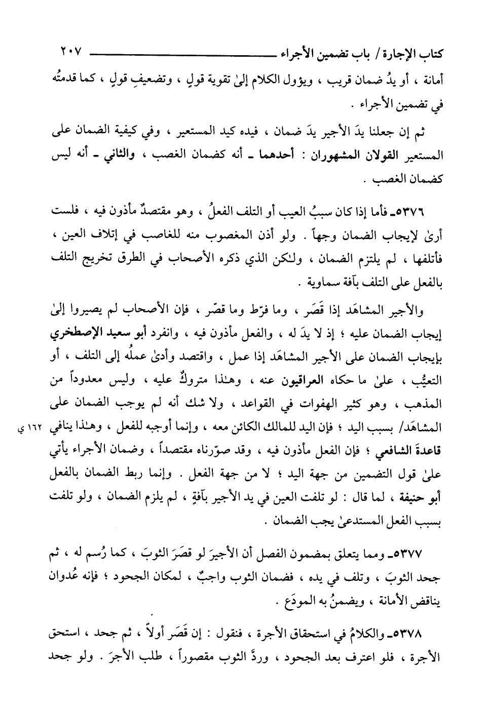 5377 - ومما يتعلق بمضمون الفصل أن الأجيرَ لو قصَرَ الثوبَ، كما رُسم له، ثم جحد الثوبَ، وتلف في يده، فضمان الثوب واجبٌ، لمكان الجحود؛ فإنه عُدوان يناقض الأمانة، ويضمنُ به المودَع.