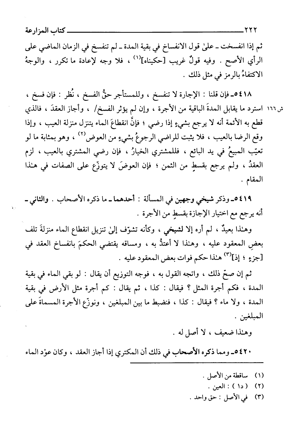 5420 - ومما ذكره الأصحاب في ذلك أن المكتري إذا أجاز العقد، وكان عوْد الماء