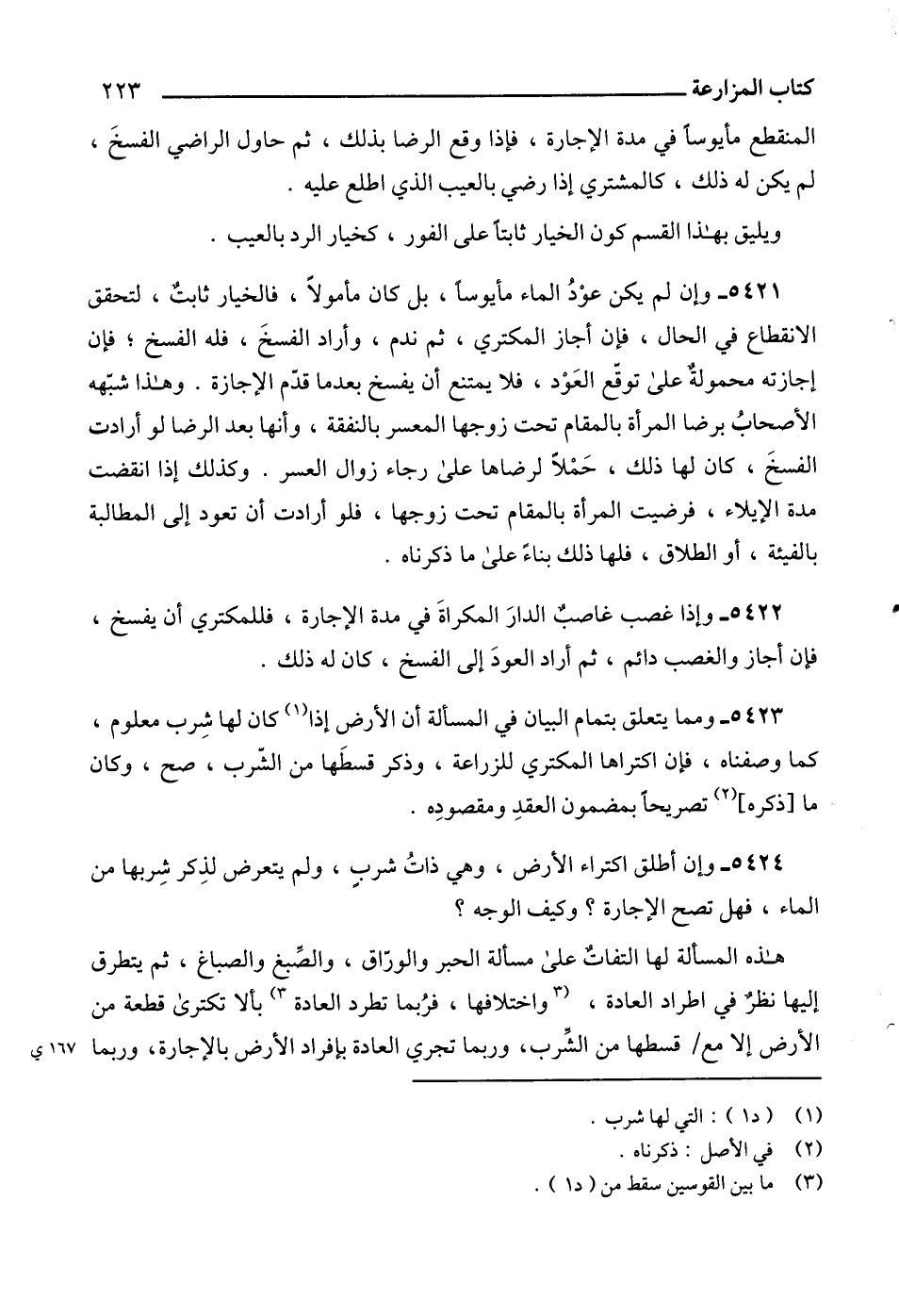 5423 - ومما يتعلق بتمام البيان في المسألة أن الأرض إذا (1) كان لها شِرب معلوم، كما وصفناه، فإن اكتراها المكتري للزراعة، وذكر قسطَها من الشّرب، صح، وكان ما [ذكره] (2) تصريحاً بمضمون العقدِ ومقصودِه.