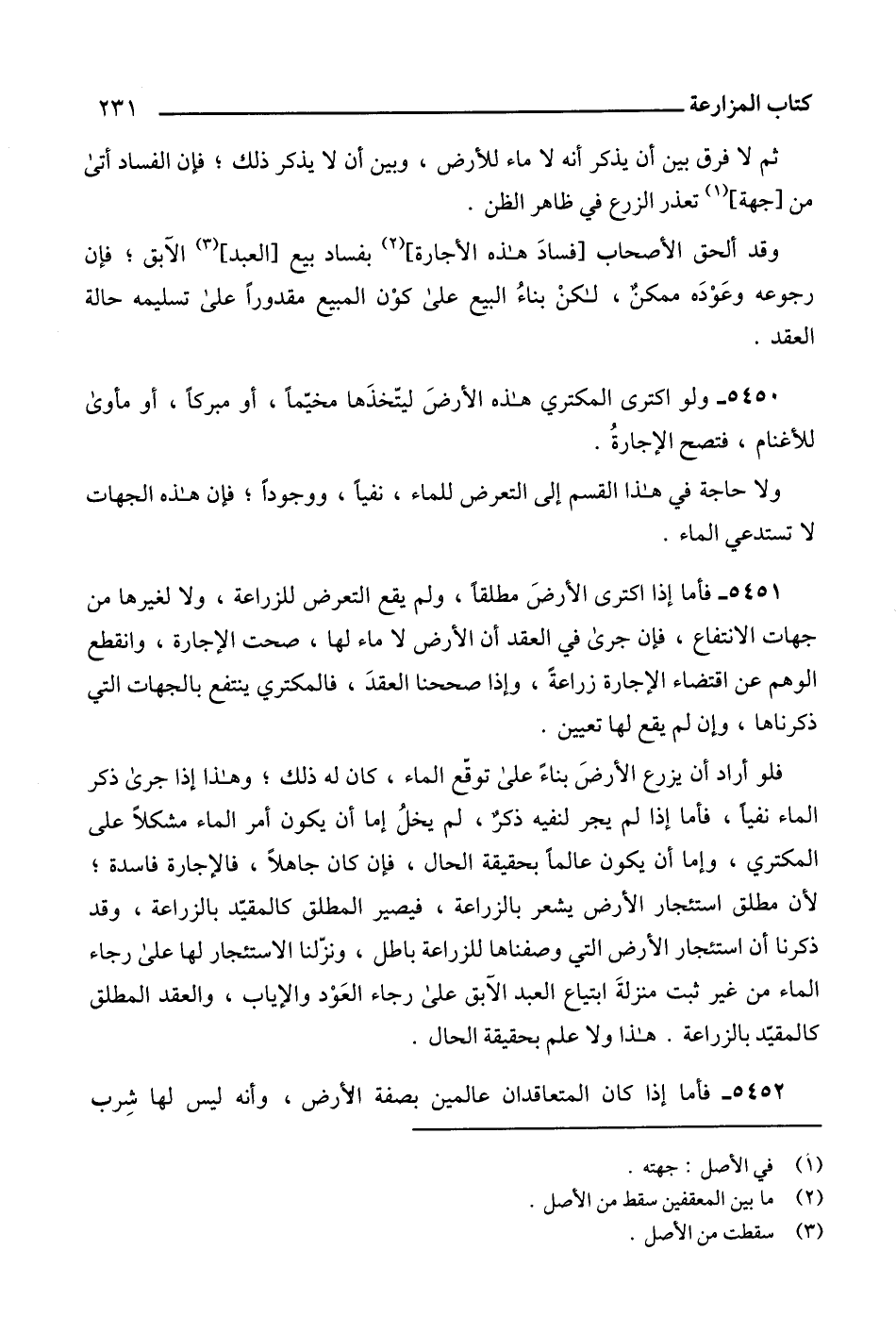 5450 - ولو اكترى المكتري هذه الأرضَ ليتّخذَها مخيّماً، أو مبركاً، أو مأوى للأغنام، فتصح الإجارةُ.
