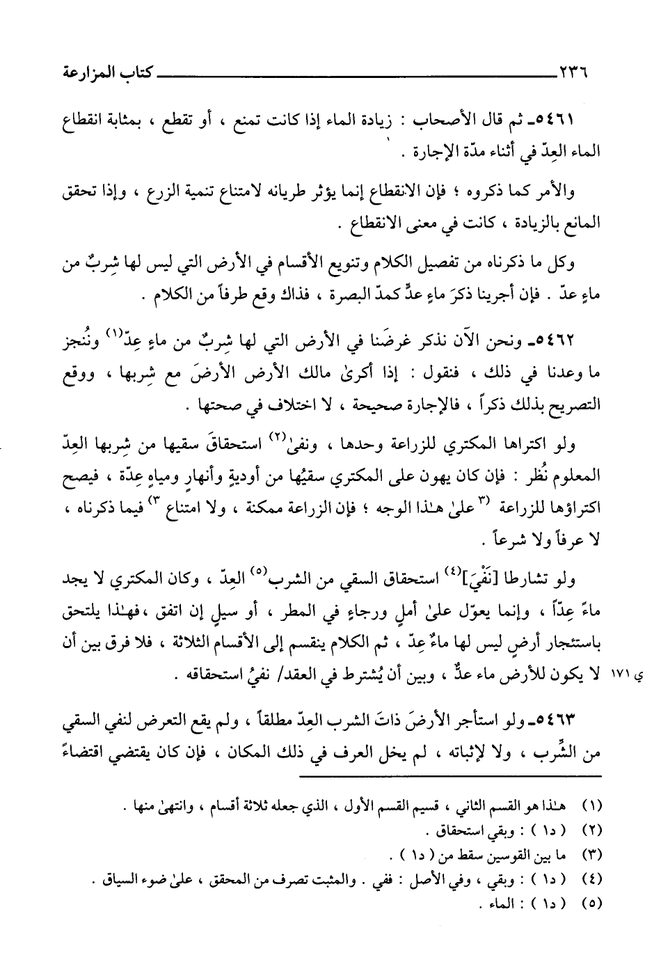 وكل ما ذكرناه من تفصيل الكلام وتنويع الأقسام في الأرض التي ليس لها شِربٌ من ماءٍ عِدّ. فإن أجرينا ذكرَ ماءٍ عدٍّ كمدّ البصرة، فذاك وقع طرفاً من الكلام.