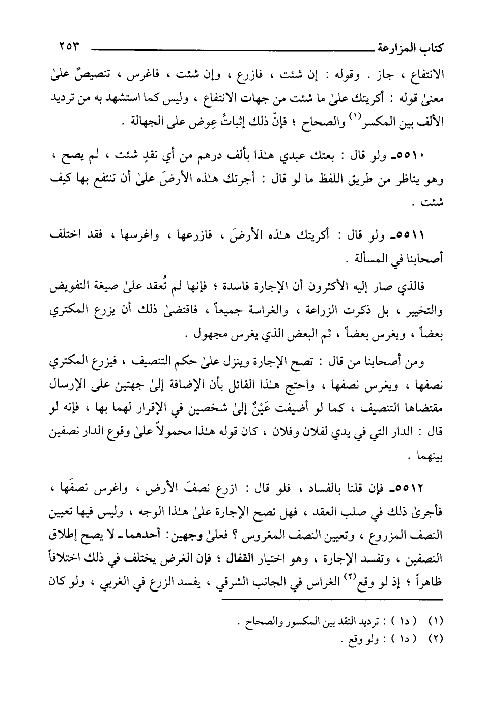 الانتفاع، جاز. وقوله: إن شئت، فازرع، وإن شئت، فاغرس، تنصيصٌ على معنى قوله: أكريتك ًعلى ما شئت من جهات الانتفاع، وليس كما استشهد به من ترديد الألف بين المكسر (1) والصحاح؛ فإنّ ذلك إثباتُ عِوض على الجهالة.