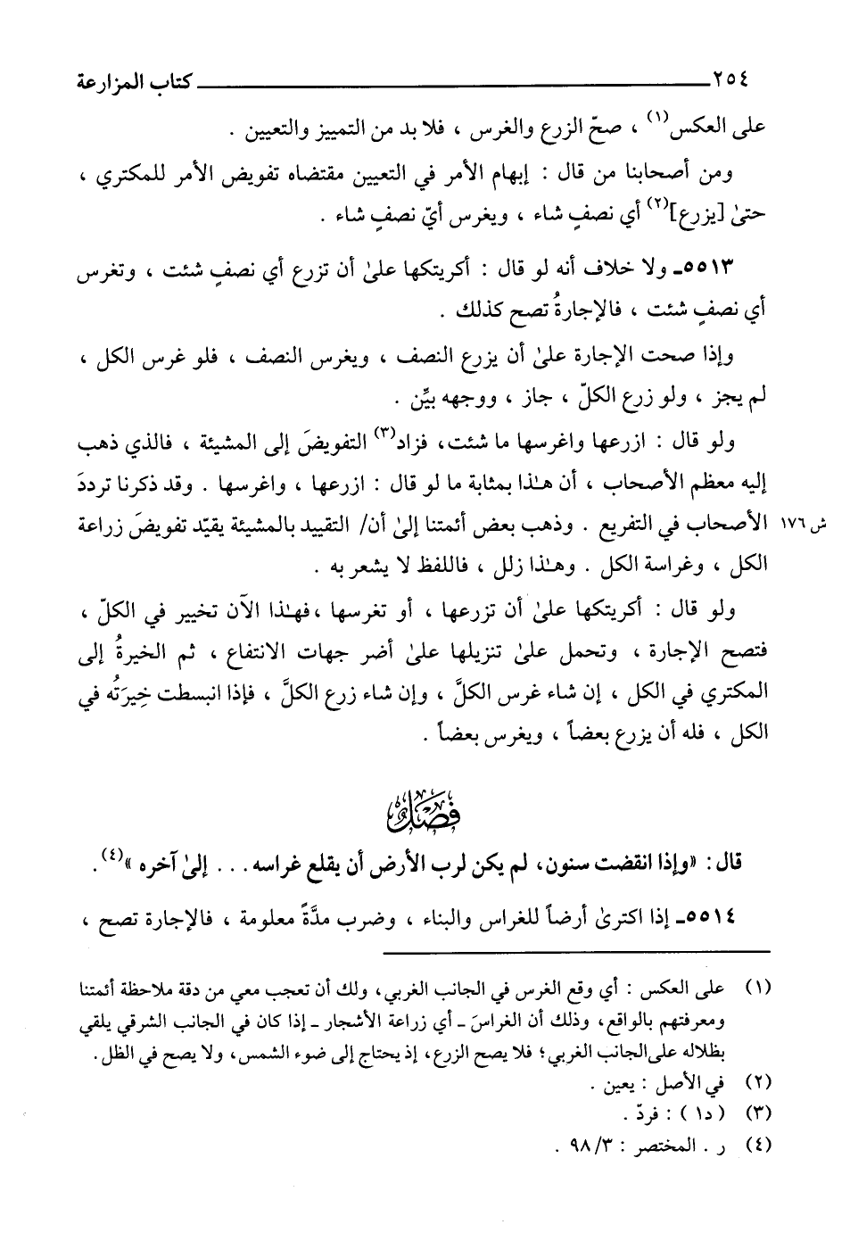 (1) على العكس: أي وقع الغرس في الجانب الغربي، ولك أن تعجب معي من دقة ملاحظة أئمتنا ومعرفتهم بالواقع، وذلك أن الغراسَ -أي زراعة الأشجار- إذا كان في الجانب الشرقي يلقي بظلاله على الجانب الغربي؛ فلا يصح الزرع، إذ يحتاج إلى ضوء الشمس، ولا يصح في الظل.