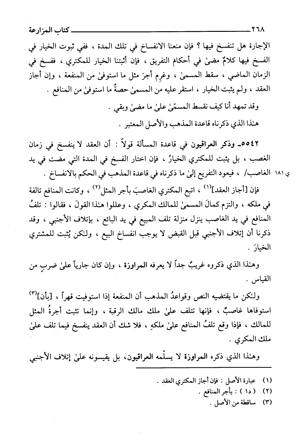 5542 - وذكر العراقيون في قاعدة المسألة قولاً: أن العقد لا ينفسخ في زمان الغصب، بل يثبت للمكتري الخيارُ، فإن اختار الفسخ في المدة التي مضت في يد الغاصب، فيعود التفريع إلى ما ذكرناه في قاعدة المذهب في الحكم بالانفساخ.