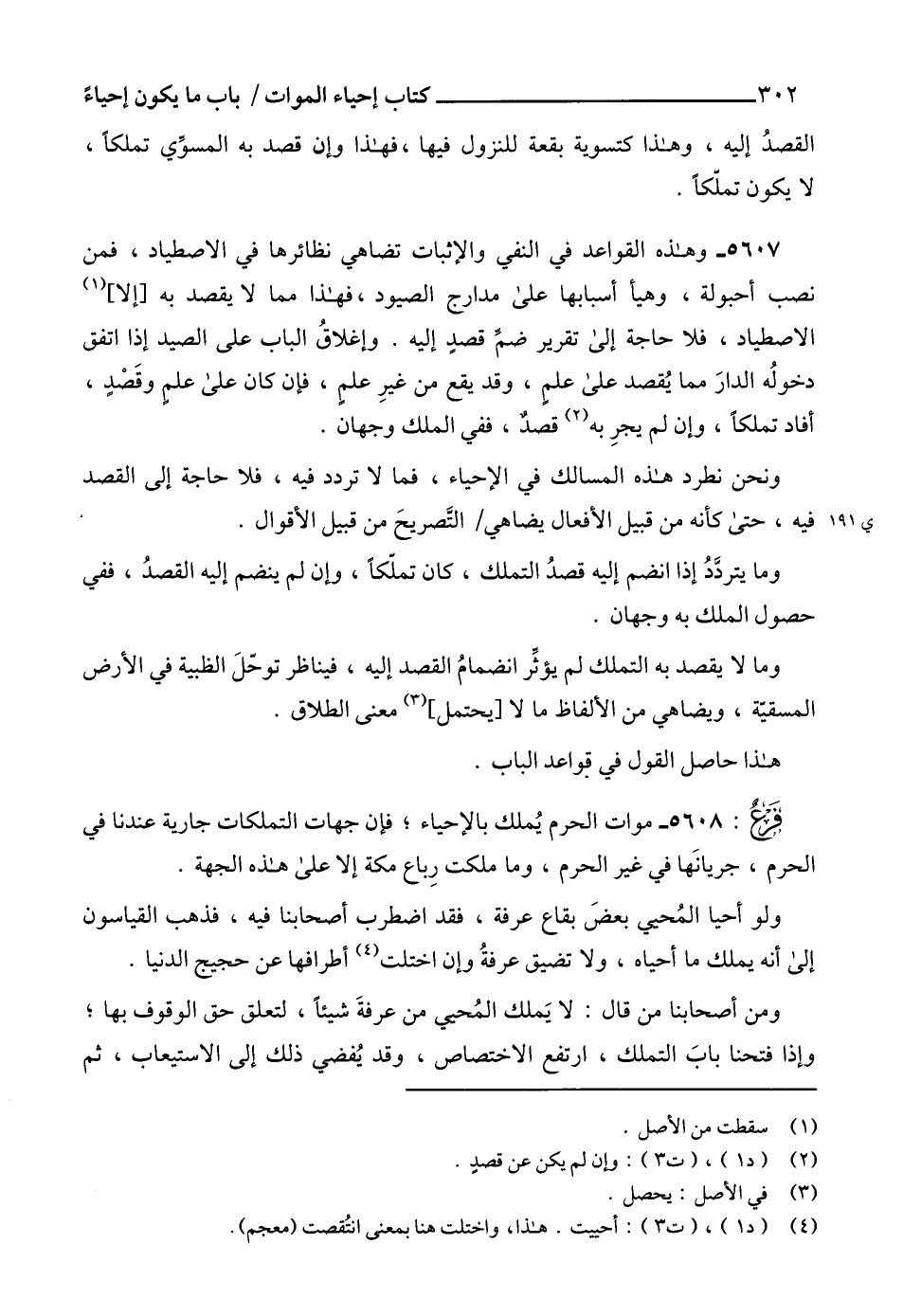 5608 - موات الحرم يُملك بالإحياء؛ فإن جهات التملكاًت جارية عندنا في الحرم، جريانَها في غير الحرم، وما ملكت رِباع مكة إلا على هذه الجهة.