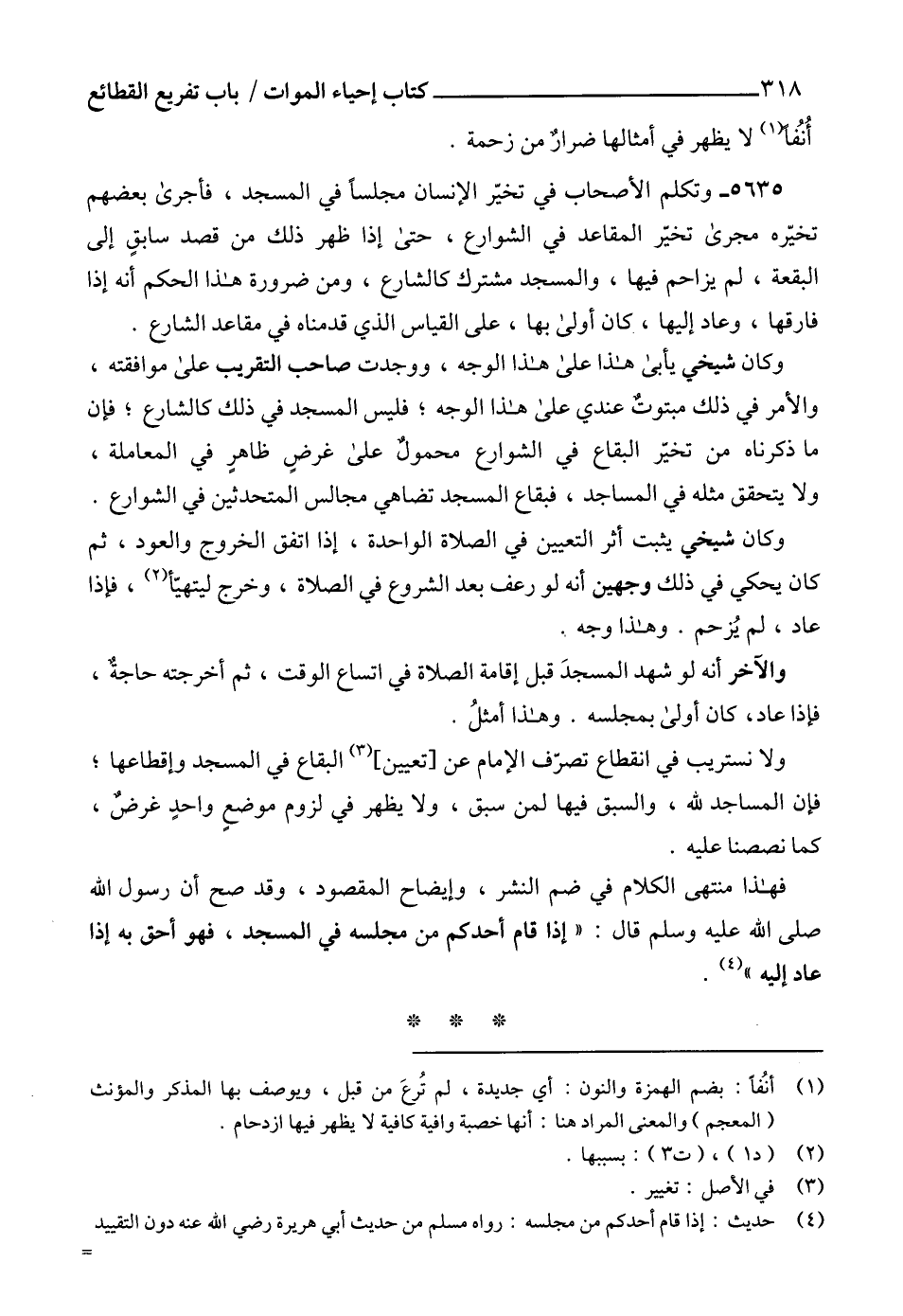 فهذا منتهى الكلام في ضم النشر، وإيضاح المقصود، وقد صح أن رسول الله صلى الله عليه وسلم قال: " إذا قام أحدكم من مجلسه في المسجد، فهو أحق به إذا عاد إليه " (4).